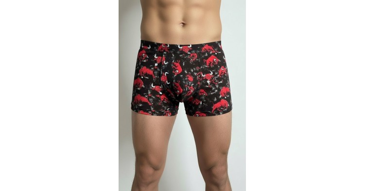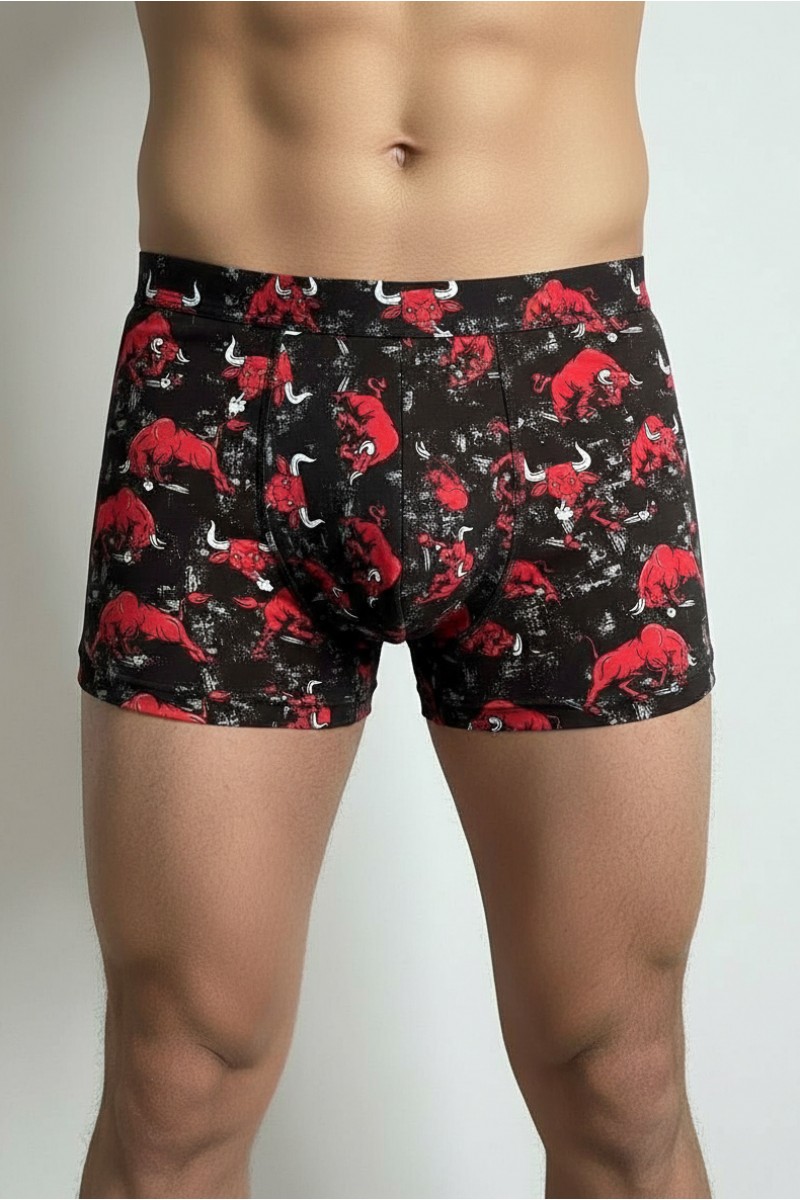 Мужские боксеры из хлопка с изображением быка, оформленным по всему периметру. На вшитой резинке сбоку пришита бирочка с логотипом бренда. Обеспечивают комфорт и стиль благодаря качественной ткани и продуманному дизайну.