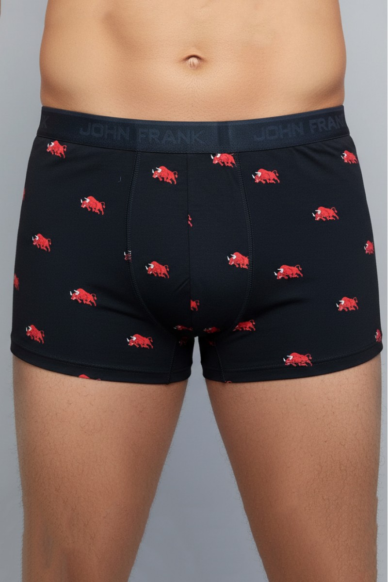 Мужские боксеры из модала с изображением быка, оформленным по всему периметру. На пришивной резинке расположено стильное логотип бренда. Обеспечивают комфорт и стиль благодаря мягкой и приятной ткани, идеально подходят для повседневного ношения.