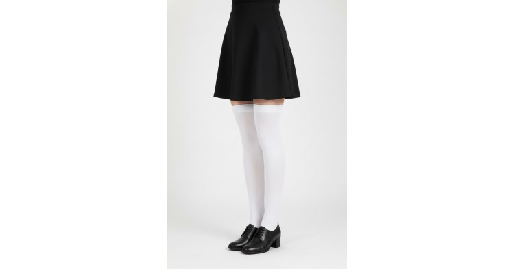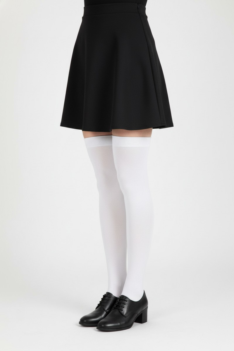 Женские гольфины выше колена в белом цвете создают стильный и элегантный образ. Они мягкие, комфортные и хорошо держатся на ноге. Универсальный цвет легко сочетается с различной одеждой. Отличный вариант для холодного времени года или дополнения модного наряда.