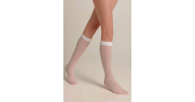 Нежные, изящные тонкие гольфы с очаровательным рисунком в мелкий горошек. Легко сочетаются с праздничными нарядами и повседневной одеждой. Приятный материал мягко облегает ножку и дарит ощущение комфорта в течение всего дня.