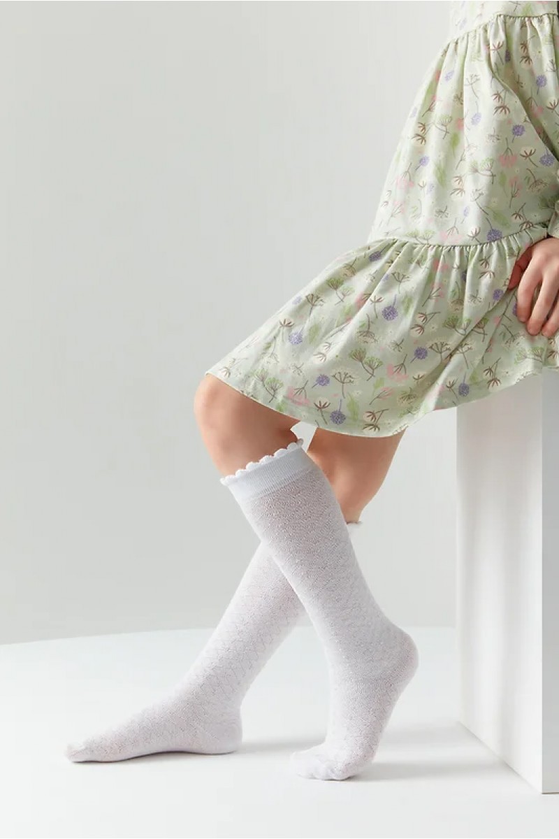 Детские ажурные гольфы для девочек с оригинальным бортом и рисунком в виде ромбиков. В составе - высококачественный хлопок, который обладает высокой воздухопроницаемостью, отлично впитывает влагу, приятен на ощупь и подходит даже для чувствительной детской кожи. Мягкая удобная резинка и кеттельный (плоский) шов на мыске создают дополнительный комфорт. Гольфы превосходно облегают, обладают повышенной износостойкостью, сохраняют форму и насыщенность цвета после стирки. Гольфы смотрятся изящно благодаря лаконичному рисунку и необычному борту и эффектно дополнят образ маленькой принцессы. Omsa Kids созданы с заботой и любовью к детям.