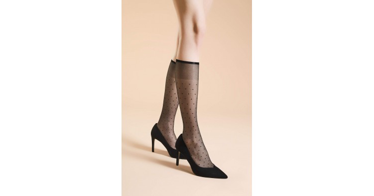 Тонкие капроновые гольфы с узором "мелкий горошек". Плотность изделия - 20 ден.