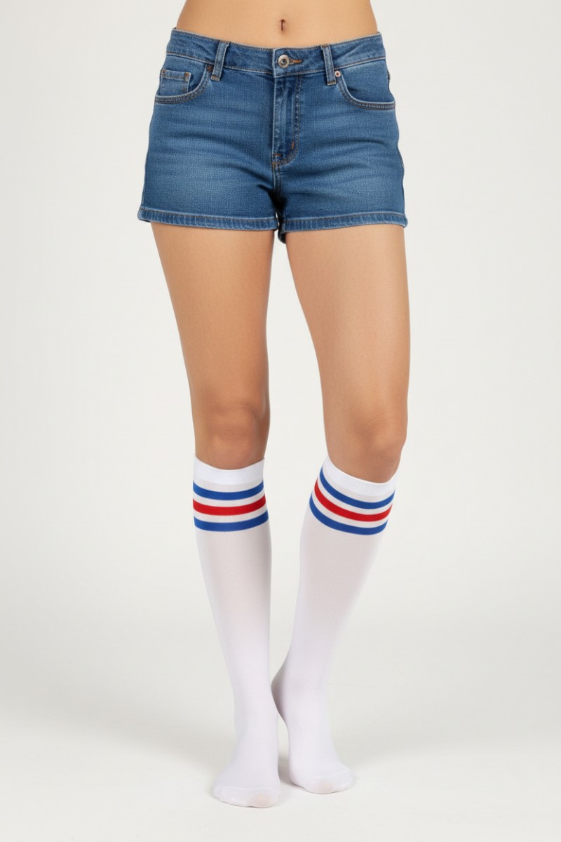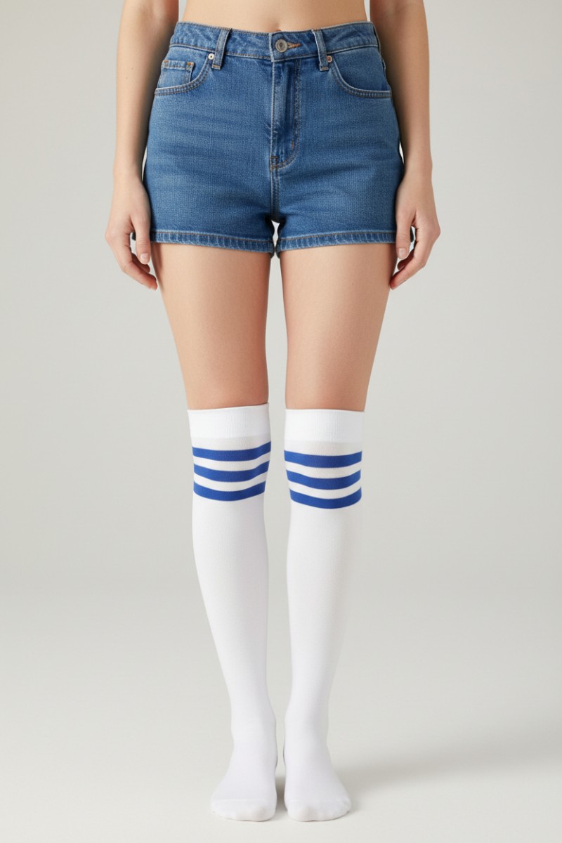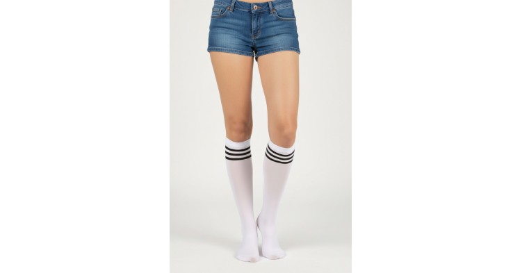 Женские гольфы из микрофибры с широкой резинкой и цветными полосками под ней. Элегантный и женственный аксессуар, который сочетается как в классическом образе, так и в спортивном.