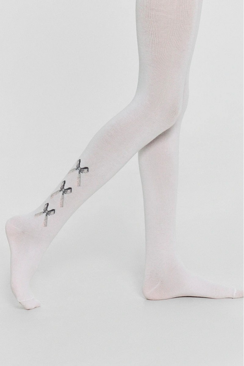 Красивые и удобные колготки детские из высококачественного гребенного хлопка с рисунком в виде бантиков. Натуральные волокна гипоаллергенны, отлично впитывают влагу и позволяют коже дышать, а за счет добавления в состав небольшого количества эластана колготки для девочки хорошо тянутся и не деформируются. Колготки долго носятся и сохраняют внешний вид даже после большого количества стирок. Широкая мягкая резинка не давит на живот и не позволяет сползать колготкам, пятка и носок дополнительно укреплены, шов на мыске незаметный и не натирает ножку в обуви — это очень важно для ребенка.