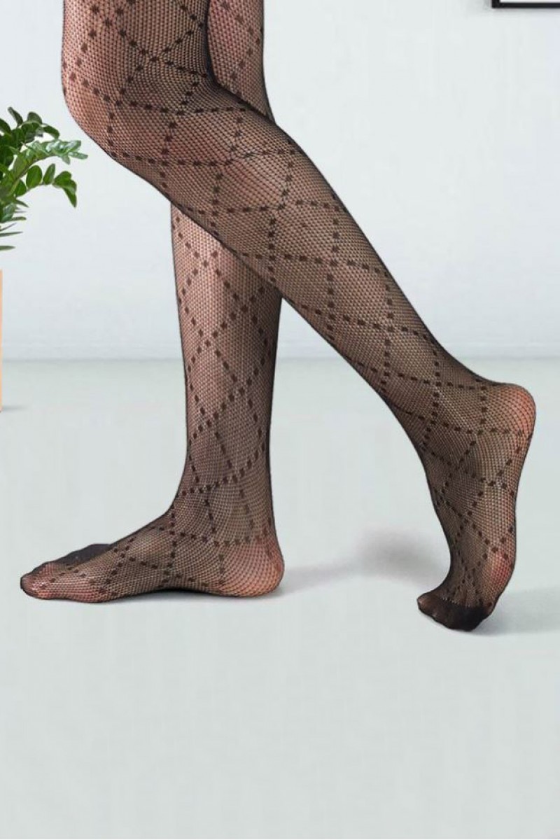 Эффектные колготки из эластичной сетки с крупным ромбовидным рисунком. Делают образ выразительным, визуально вытягивают силуэт и легко сочетаются как с повседневными, так и с вечерними нарядами.