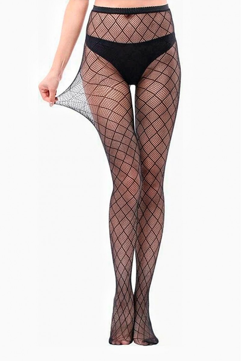 Фантазийные чёрные колготки в сетку с эффектным сочетанием сетчатого и геометрического жаккардового переплетения создают выразительный и стильный образ. Оригинальный узор подчёркивает ноги и придаёт им изящность. Плотная, но эластичная структура обеспечивает комфортную посадку. Прекрасно подходят как для повседневных луков, так и для особых выходов.