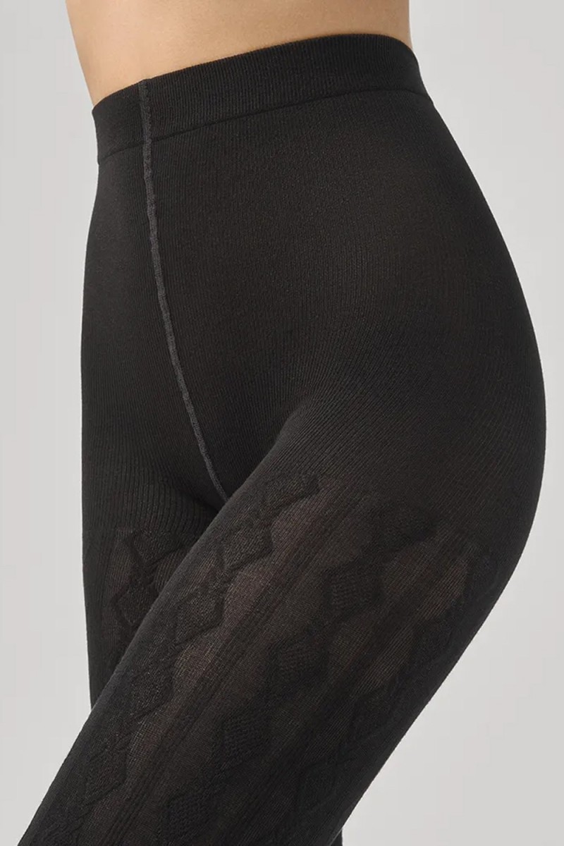Женские плотные колготки 100 den из вискозы с жаккардовым рисунком в виде косички. Нежная и мягкая вискоза приятно ощущается на теле и подходит для чувствительной кожи. Добавление эластана обеспечивает превосходное облегание. Удобный пояс, плоские швы и гигиеничная ластовица создают дополнительный комфорт. Укрепленный мысок способствует усилению прочности. Стильные колготки с трендовым рисунком выглядят как оригинальный акцент и эффектно дополнят наряд, придавая ему изысканность и индивидуальность. Они идеально подойдут как для повседневных образов, так и для создания модных аутфитов на выход.