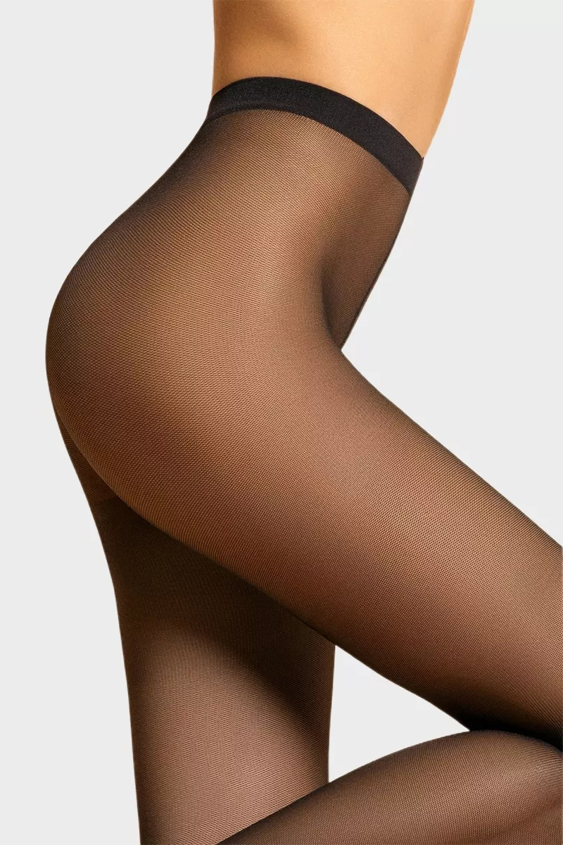 Эластичные средней плотности колготки в микросетку - тюль. Уже не тонкие, но еще прозрачные. Мелкоячеистая тюлевая структура колготок фактически незаметна, но придает особый шарм, а также улучшает практичность (стойкость к образованию стрелок). Колготки с классической посадкой (на талии). Однородные по всей длине. Ширина пояса-резинки - 2.5 см. С гигиенической ластовицей из хлопка. С простым круглым соединительным швом. Не формованные. С прозрачным мыском.