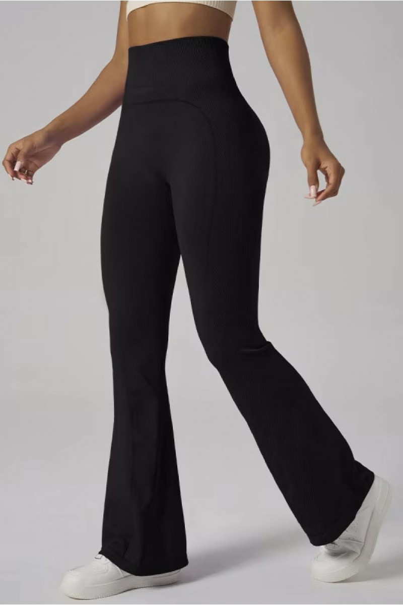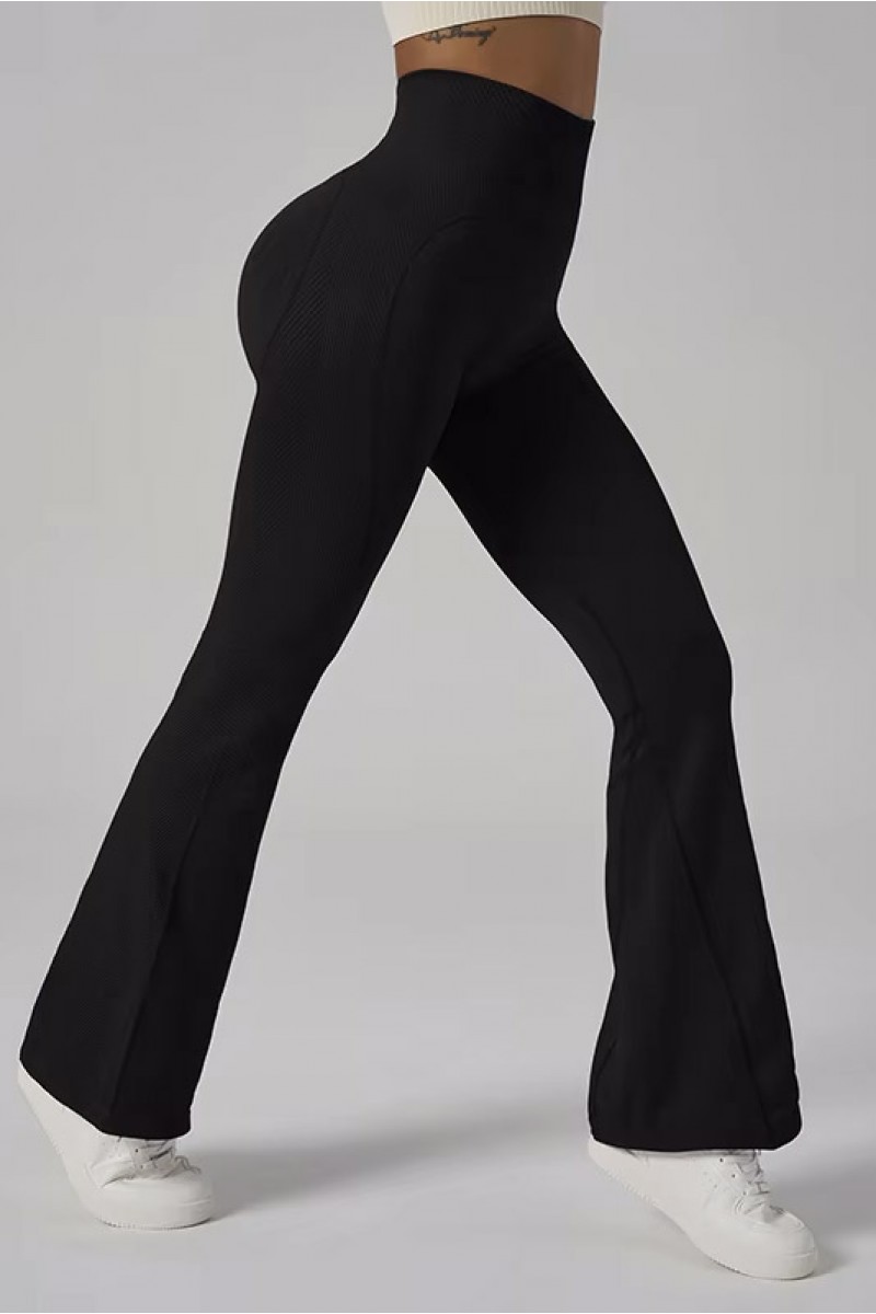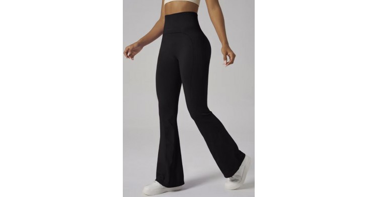 Женские леггинсы с завышенной талией выполнены из эластичного и приятного к телу материала, обеспечивающего идеальную посадку по фигуре и комфорт во время движения. Модель с расклёшённым низом визуально удлиняет ноги и подчёркивает силуэт, а лаконичный чёрный цвет делает эти леггинсы универсальным элементом гардероба, подходящим для спорта, прогулок и повседневных образов. Сзади предусмотрены специальные вставки с пуш ап эффектом, которые подчёркивают форму и придают ягодицам дополнительный объём, а соединительный шов между ягодицами обеспечивает ещё более выгодную посадку и акцентирует красивые линии фигуры.