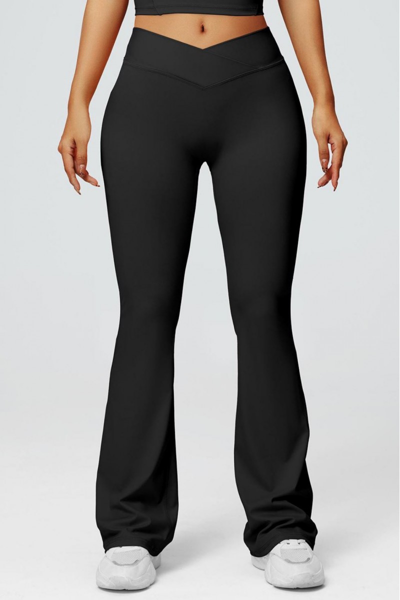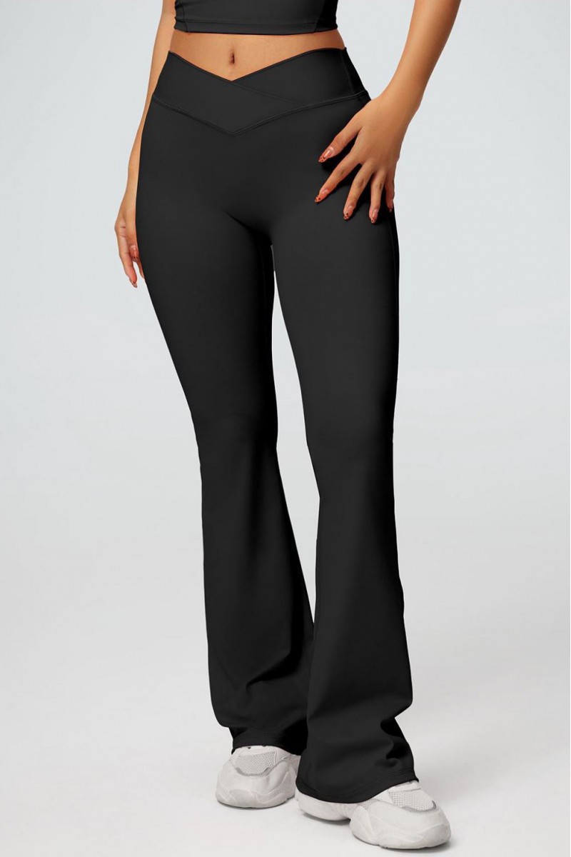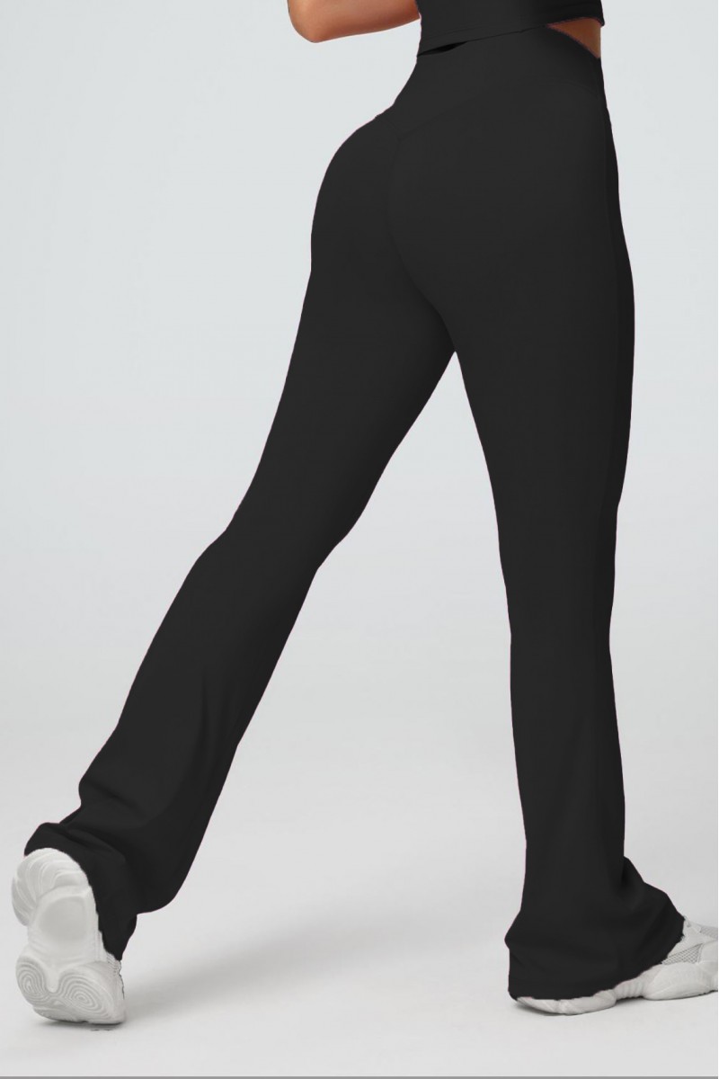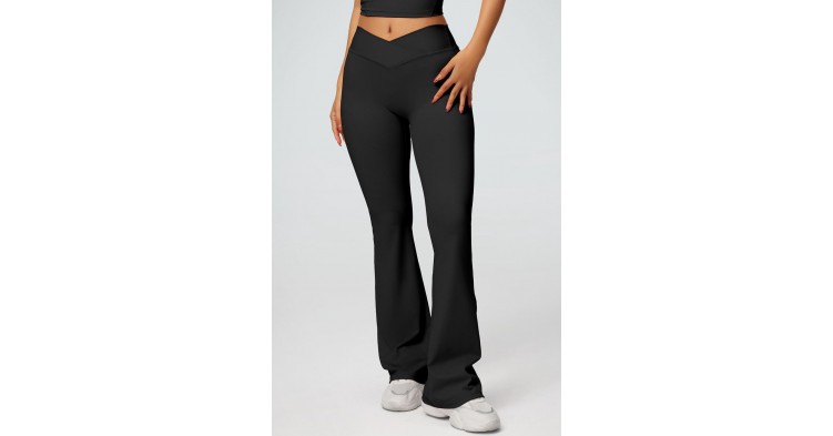 Стильные женские леггинсы клёш с высокой посадкой и эффектным V-образным поясом — идеальный выбор для тех, кто ценит комфорт и современный дизайн. Эластичная ткань отлично прилегает к телу, подчёркивает фигуру и не сковывает движений, а расклёшённый низ визуально удлиняет ноги и добавляет изящества образу. Универсальный чёрный цвет легко сочетается с любыми топами и обувью, делая эти леггинсы отличным вариантом как для тренировок, так и для повседневных стильных нарядов.
