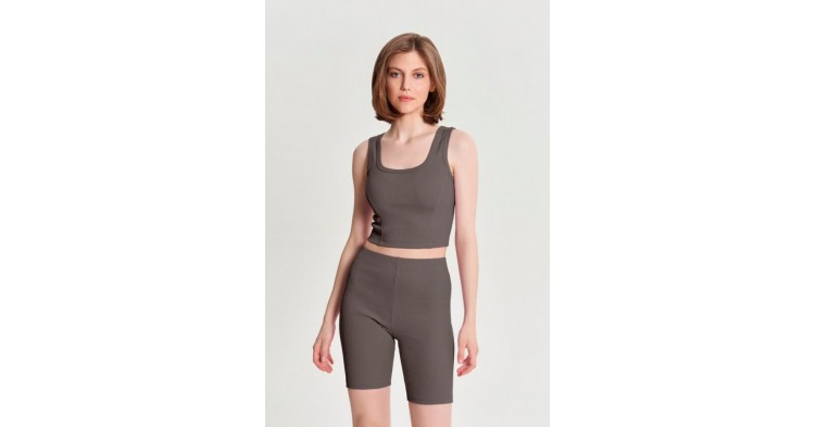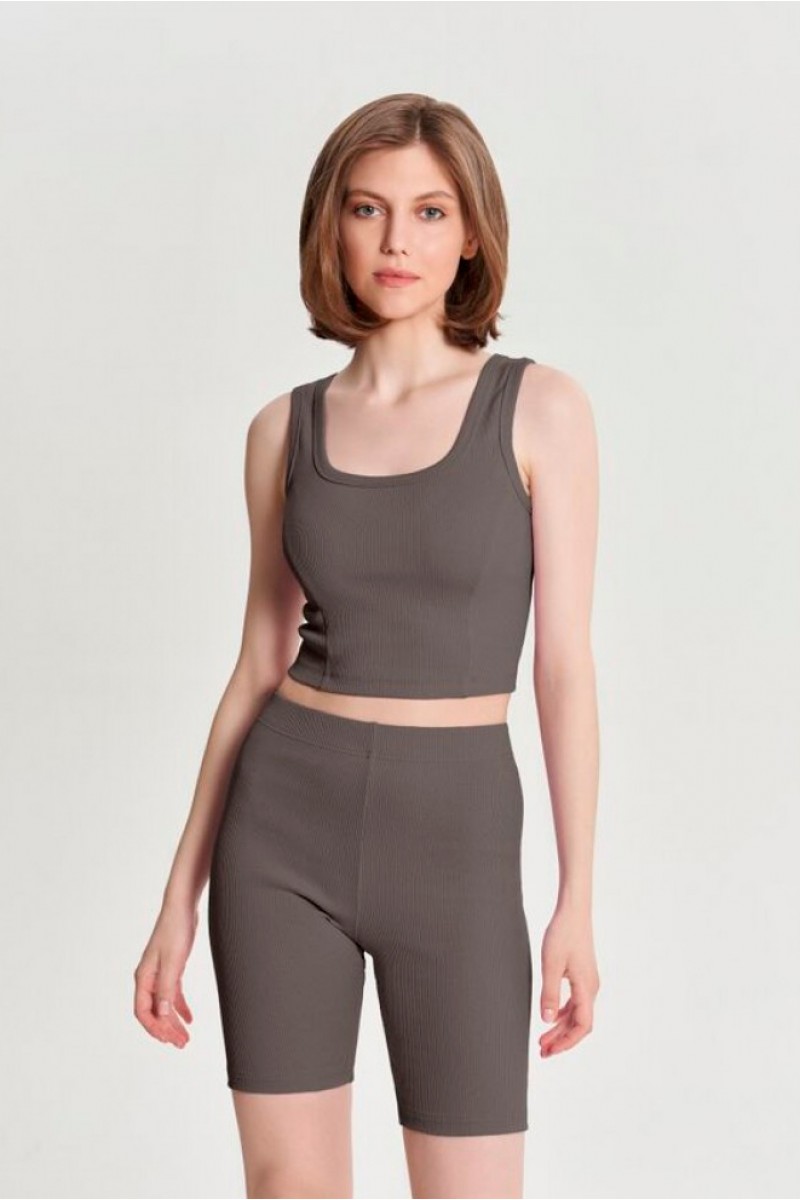 Укороченная майка из хлопкового кашкорсе с корсетными вставками. Благодаря дышащему, гипоаллергенному полотну подойдет для занятий спортом и повседневной носки. Рекомендуем носить с велосипедками, шортами и брюками.