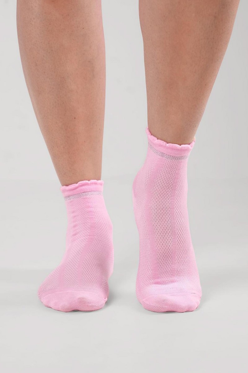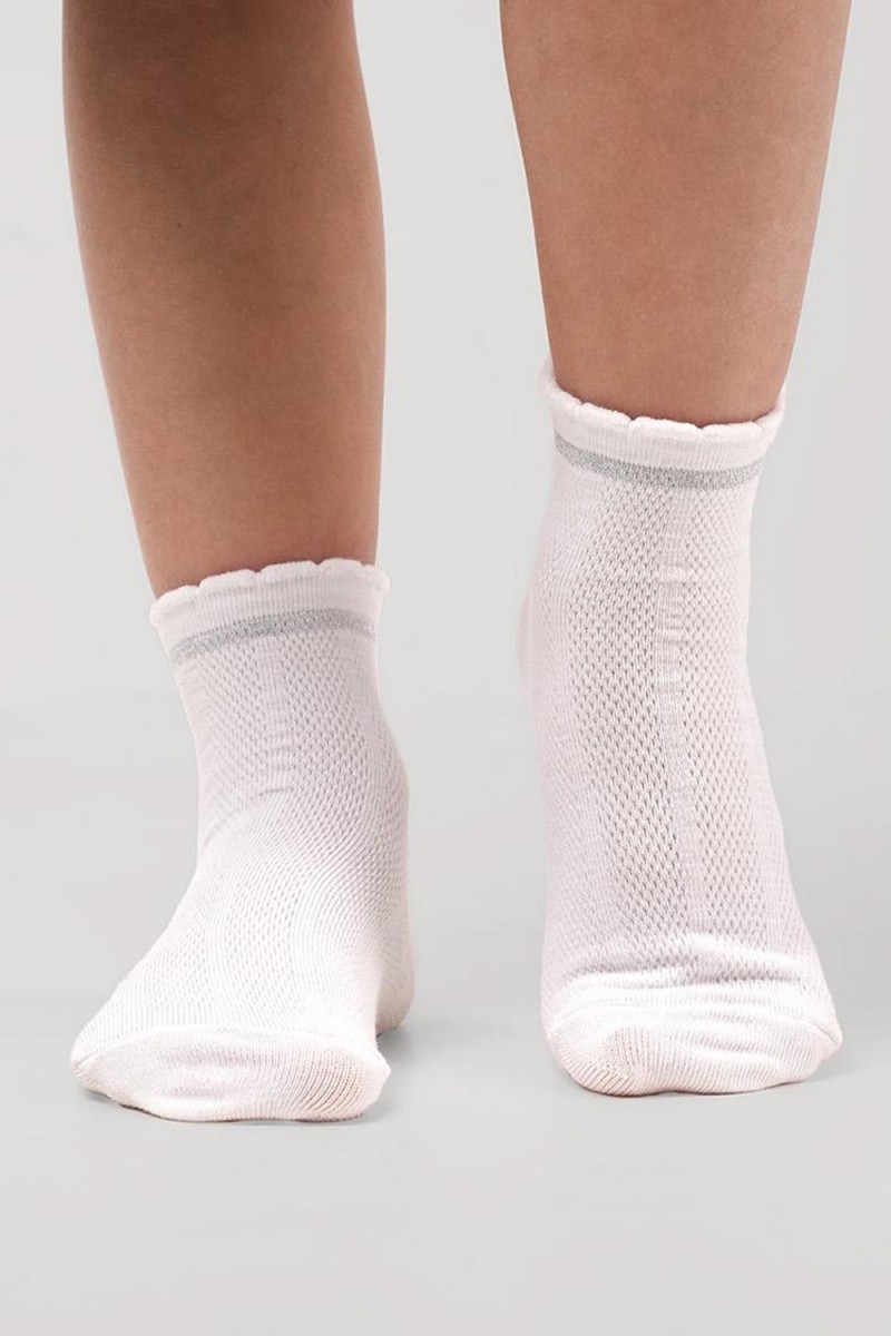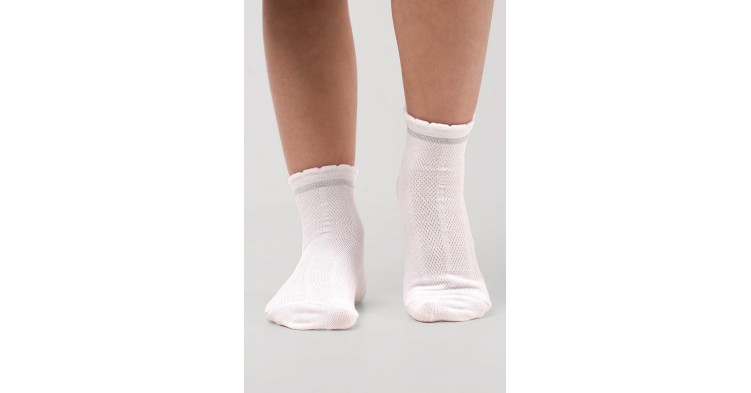 Нарядные ажурные носки для девочки, выполненные из лёгкого и дышащего материала с изысканным плетением сетка. Верх украшен блестящей нитью люрекса, придающей изделию особый праздничный шарм. Мягкая эластичная резинка аккуратно фиксирует носочки на ноге, не вызывая дискомфорта. Идеальный выбор для торжественных случаев, утренников и стильных образов на каждый день!