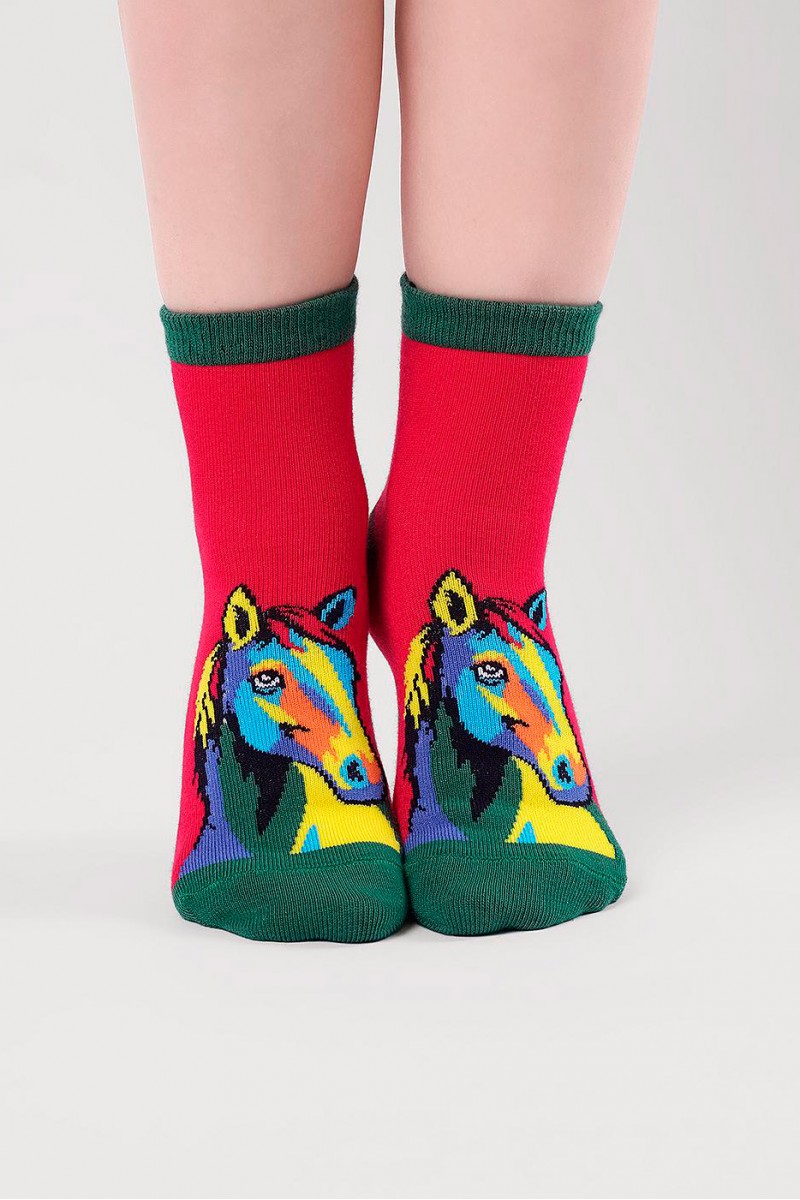 Детские носки с рисунком лошади — символом года — станут ярким акцентом в гардеробе ребёнка. Изготовлены из мягкого хлопкового полотна с добавлением полиамида и эластана, что обеспечивает комфорт и долговечность. Модель оснащена формованной пяткой и укреплённым мысом для удобной посадки и износостойкости. Яркий рисунок с лошадью поднимает настроение и привлекает внимание. Отлично подходят для повседневной носки, активных игр и занятий спортом.