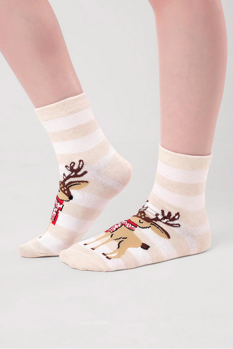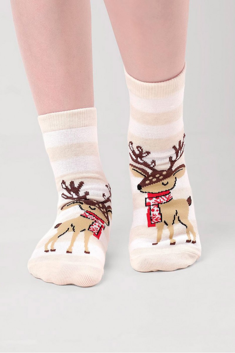 Детские носки с рисунком оленя в новогоднем шарфе. Мягкий хлопок, входящий в состав изделия, обладает высокой воздухопроницаемостью, впитывает влагу и подходит для чувствительной кожи. Добавление эластана увеличивает износостойкость и прочность. Удобные носки дополнены анатомической резинкой, которая создает эффект распределенного давления и минимизирует проявления усталости. Мягкие носки прекрасно подходят для повседневного использования, занятий спортом и активного отдыха.