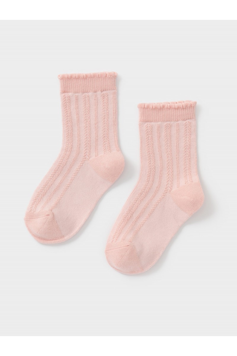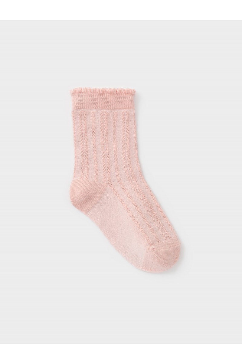 Носки длинные для девочки с формованной пяткой и эластичной резинкой по краю. Связаны ажурным узором.