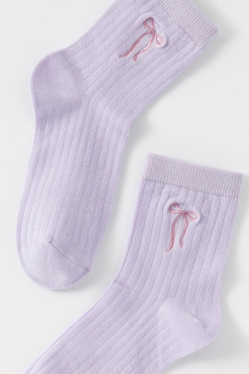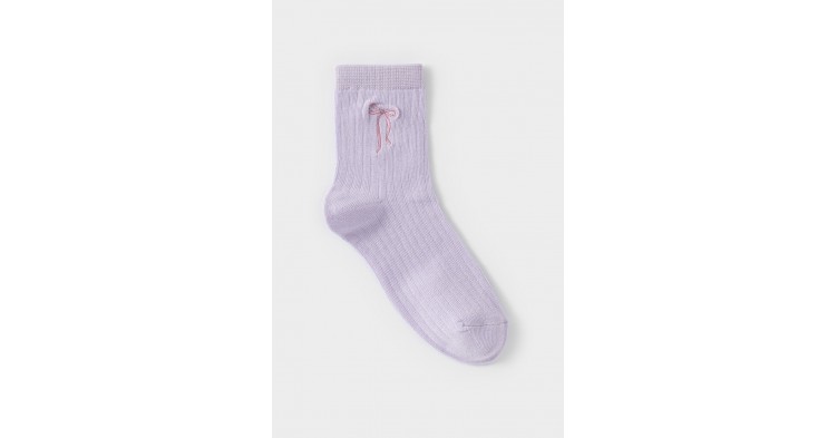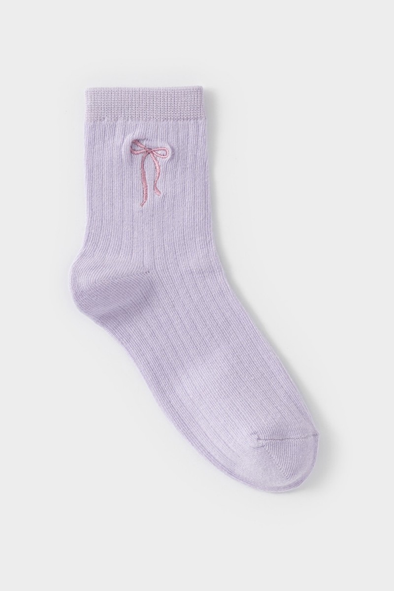 Носки длинные детские с формованной пяткой и эластичной резинкой по краю. Украшены вышивкой в виде бантика. Изделие сохраняет форму и стойкий цвет после многочисленных стирок.