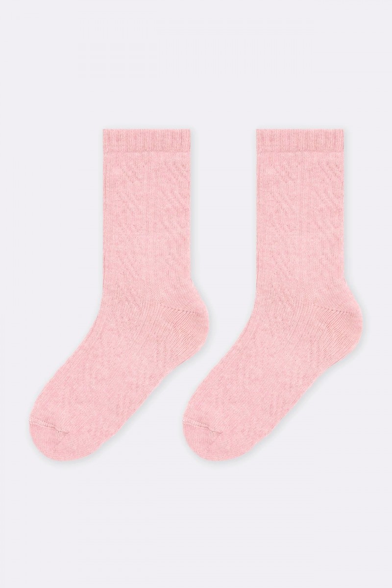 Носки детские теплые из высококачественных материалов с ажурным рисунком. Натуральные волокна отлично пропускают воздух и впитывают влагу, дарят ощущение комфорта в течение дня. Благодаря небольшому количеству эластана в составе, носки удобно сидят на ножке и не сползают, хорошо тянутся и легко надеваются. Пятка и мысок дополнительно укреплены для защиты от протирания. Резинка мягко, но надежно удерживает носки, не оставляя на коже следов. Ангора в составе изделия согреет ноги ребенка в прохладные дни.