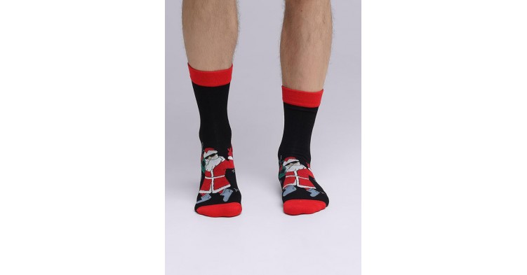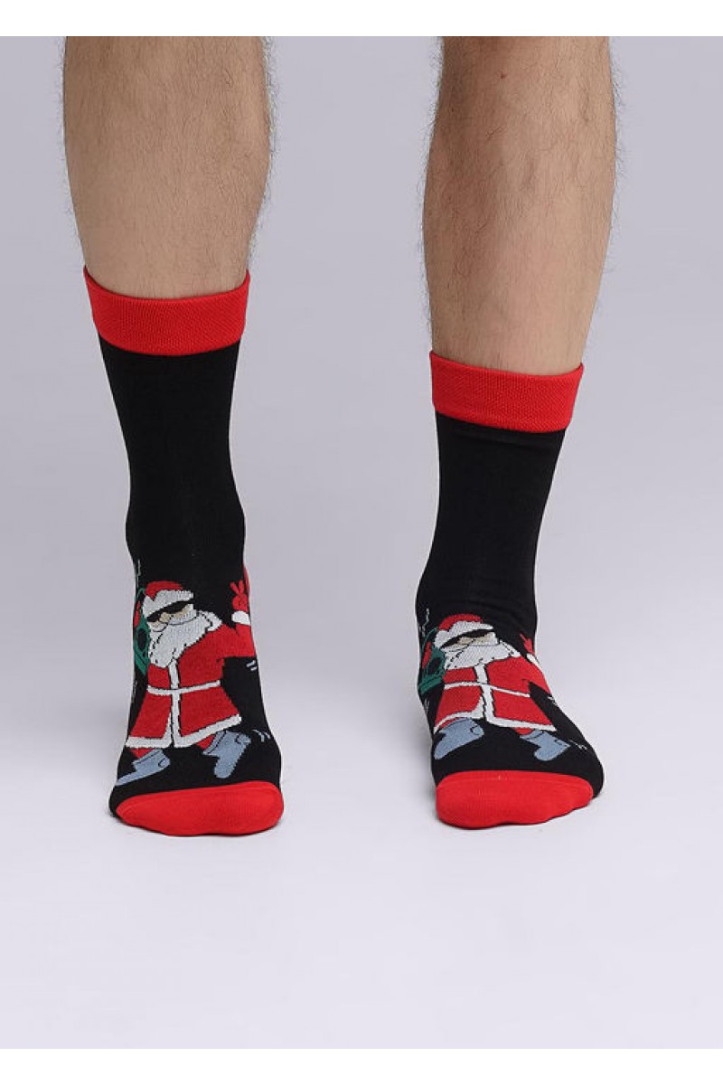 Мужские подарочные носки из хлопкового полотна с добавкой эластана. Прочная и эластичная ткань приятна для тела, прекрасно пропускает воздух, впитывает воду, не электризуется и подходит для чувствительной кожи. Добавка эластана в мужские носки придает им эластичность и гарантирует, что носки не потеряют цвет даже после многочисленных стирок. Мягкие длинные цветные носки с веселым Дедом Морозом идеально подходят для подарка близкому человеку на Новый Год или Рождество.
