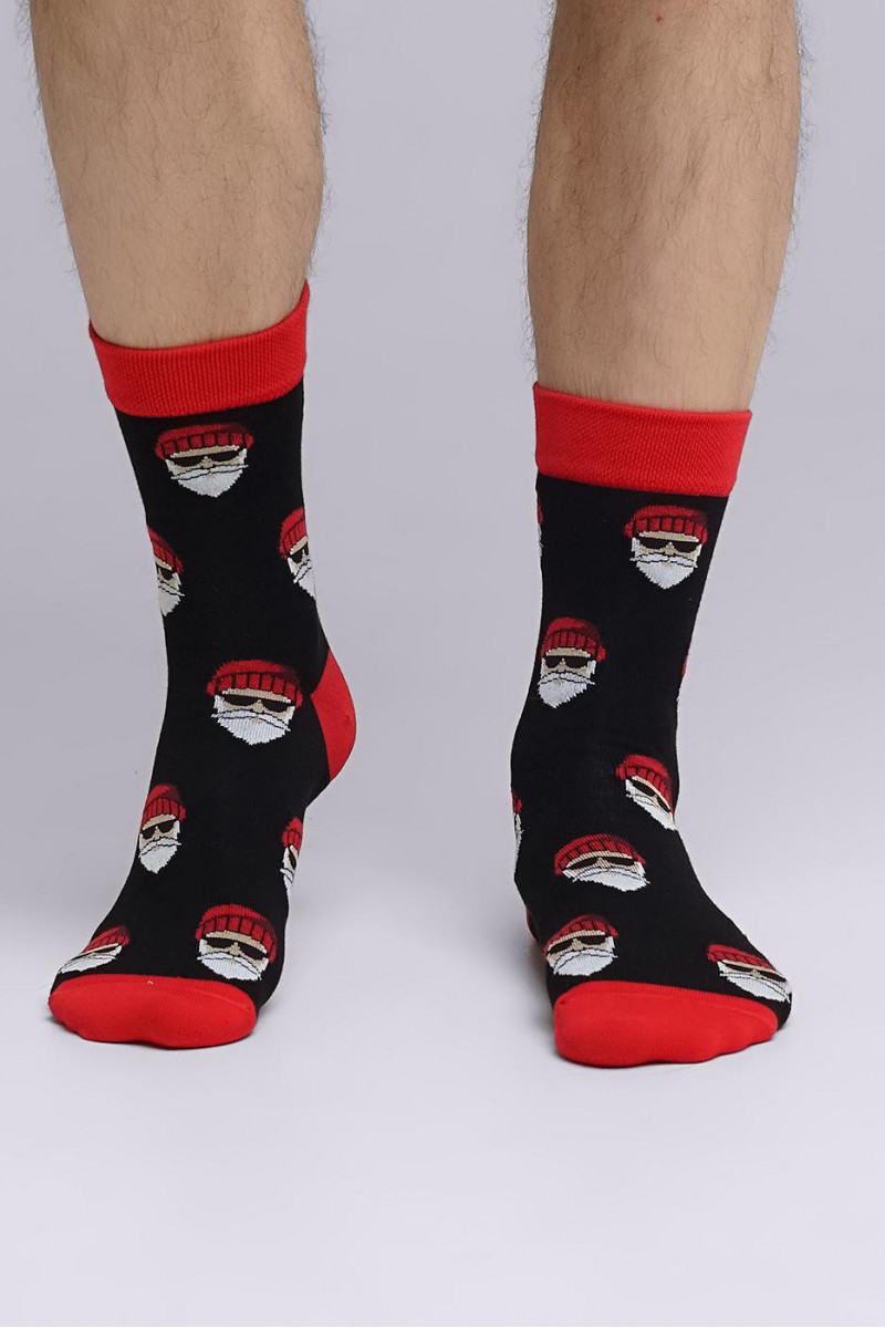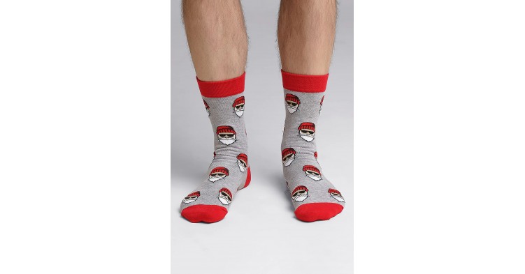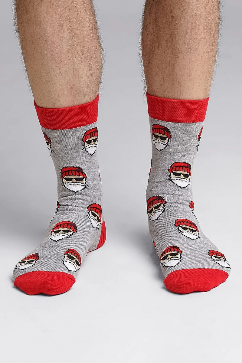 Мужские подарочные носки из хлопкового полотна с добавкой эластана. Прочная и эластичная ткань приятна для тела, прекрасно пропускает воздух, впитывает воду, не электризуется и подходит для чувствительной кожи. Добавка эластана в мужские носки придает им эластичность и гарантирует, что носки не потеряют цвет даже после многочисленных стирок. Мягкие длинные цветные носки с веселым Дедом Морозом идеально подходят для подарка близкому человеку на Новый Год или Рождество.