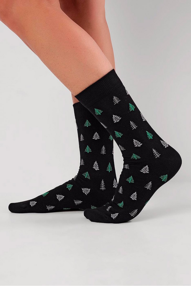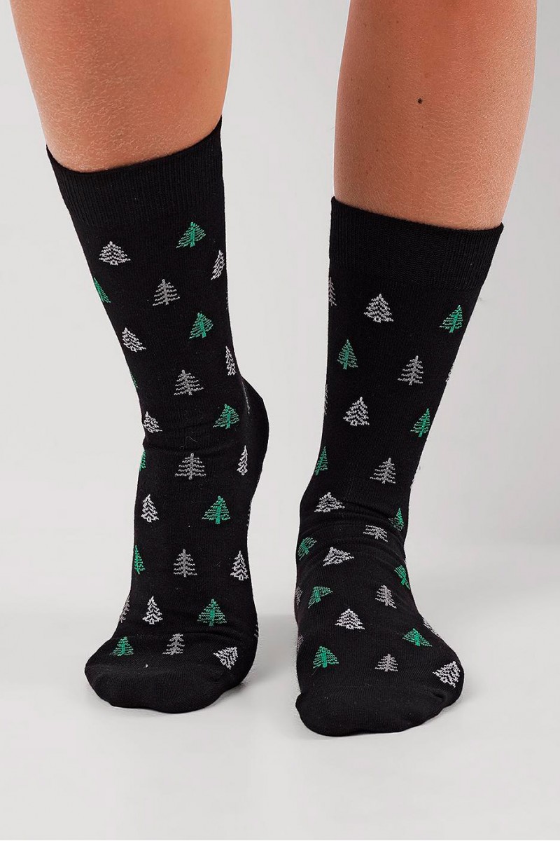 Мужские носки с рисунком ёлочек по всему периметру создают праздничное настроение и добавляют яркий акцент в образ. Выполнены из мягкого, эластичного материала для комфорта и долговечности. Идеально подходят для зимнего сезона и новогодних праздников. Стильный и практичный подарок для мужчин.