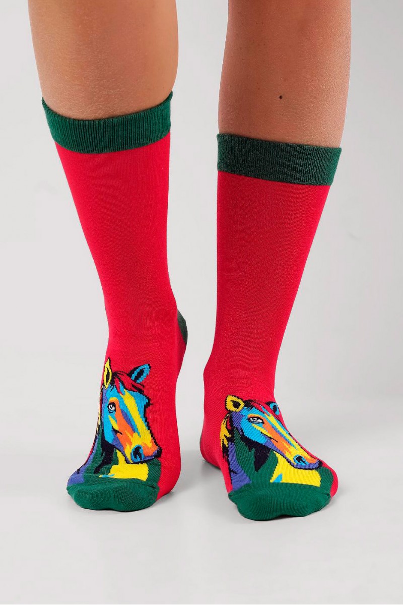 Мужские носки с рисунком лошади — символа наступающего года — станут стильным и удачным акцентом праздничного образа. Изготовлены из мягкого, дышащего материала с добавлением эластана для комфортной посадки. Яркий дизайн подчеркнёт индивидуальность и принесёт удачу в новом году. Отличный вариант для подарка или повседневного ношения.