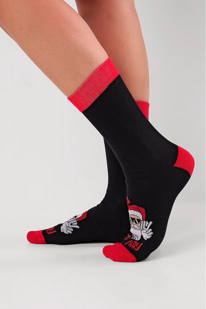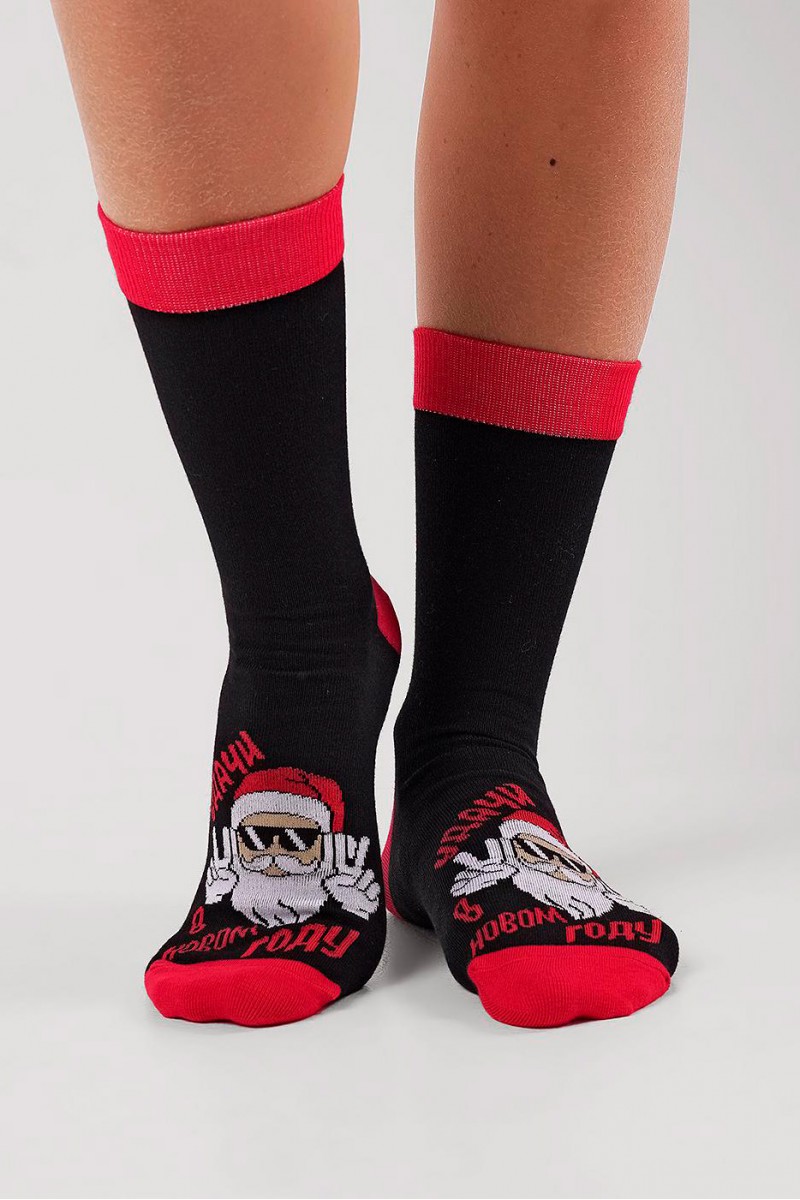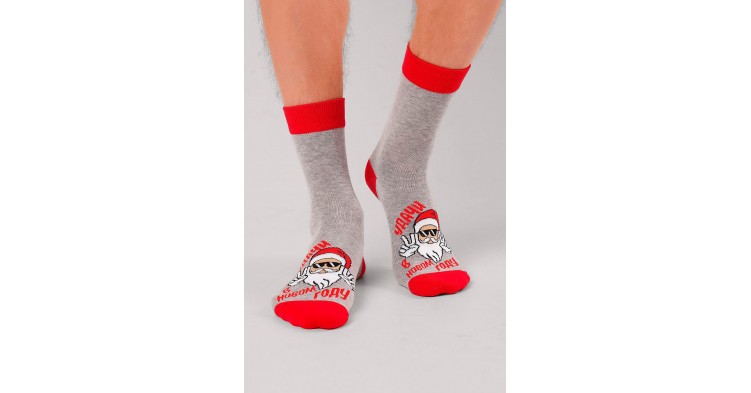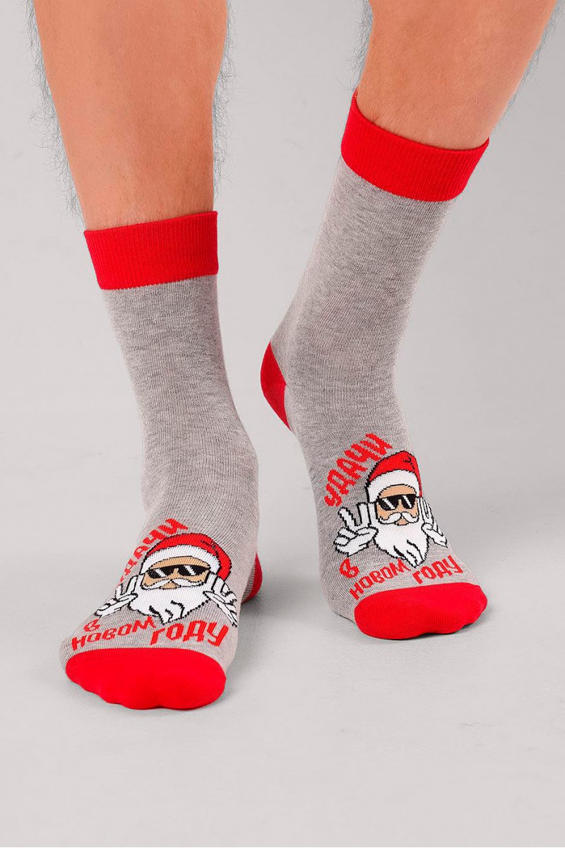 Мужские носки с выделенным мыском, пяткой и комфортным бортом обеспечивают отличную посадку и удобство в носке. Украшены праздничным рисунком с лицом Деда Мороза и надписью «Удачи в Новом году!». Выполнены из мягкого и прочного материала, который сохраняет тепло и форму. Отличный выбор для новогоднего настроения и оригинальный подарок к празднику.