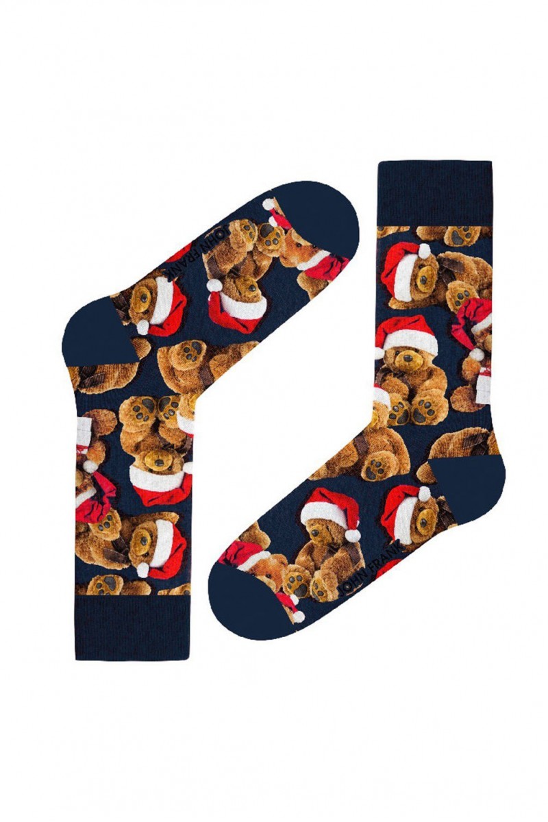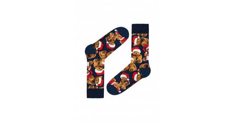 Праздничные и уютные носки, созданные для новогоднего настроения. На мягкой ткани изображен симпатичный мишка в красной шапке Деда Мороза, что добавляет праздничного настроения и уюта. Это отличный аксессуар для зимних праздников, подарка или приятного дополнения к новогоднему образу. Сделают ваши ноги теплыми и создадут атмосферу уюта и радости в преддверии Нового года.