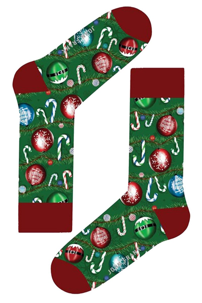 Стильные и праздничные носки, создающие атмосферу новогоднего настроения. На мягкой ткани изображены яркие елочные игрушки, свечи и снежинки, что добавляет веселого и уютного колорита. Отличный аксессуар для зимних праздников, подарка или праздничного образа. Эти носки не только согреют ноги, но и подчеркнут ваше праздничное настроение и любовь к новогодним традициям.