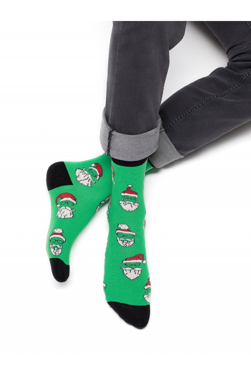Мужские носки классической длины (1/3 голени) в ярких цветах в рисунком в виде ёлочек. Из хлопка с добавлением полиамида для лучшей износоустойчивости и эластана для лучшей сохранности формы. Комфортная двубортная резинка шириной 4.0 см., обеспечивает нормальную посадку и удержание без сдавливания. С тонким кетельным швом на носке и вывязанной пяткой.