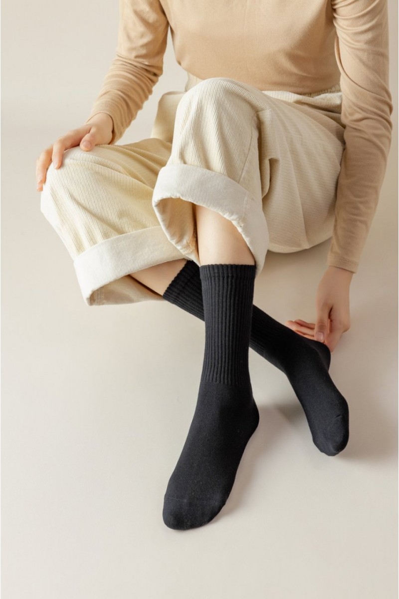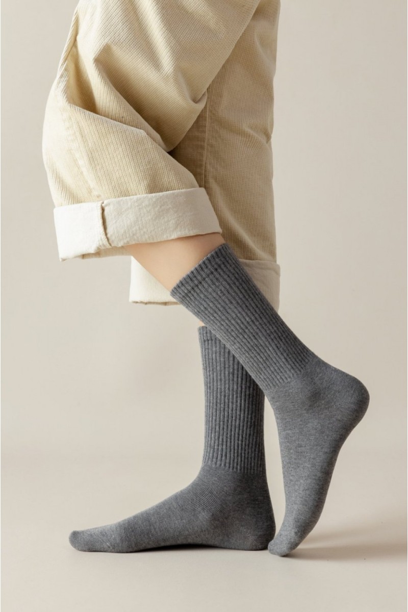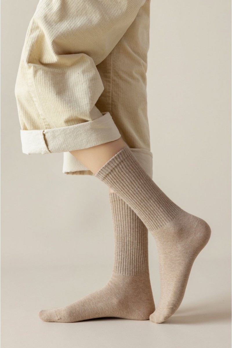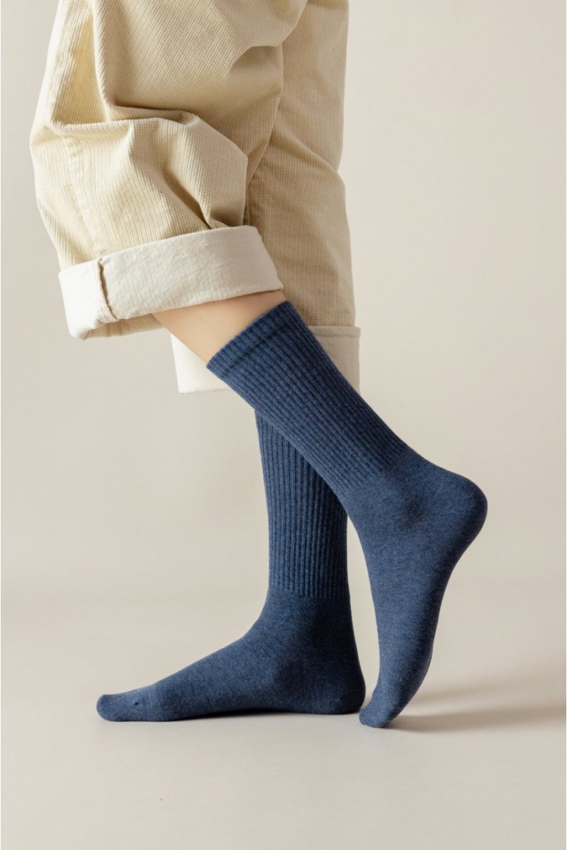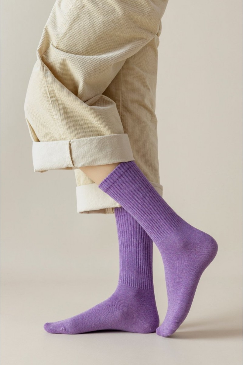 Высокие женские носки с широкой спортивной резинкой из плотного хлопка в рубчик. Резинка высокая в полоску с двубортным краем. Пяточка вывязанная укрепленная, на мыске аккуратный шов. Комфортные и мягкие, отлично подойдут для межсезонья. Носочки однотонные меланжевые, представлены в 8 оттенках.