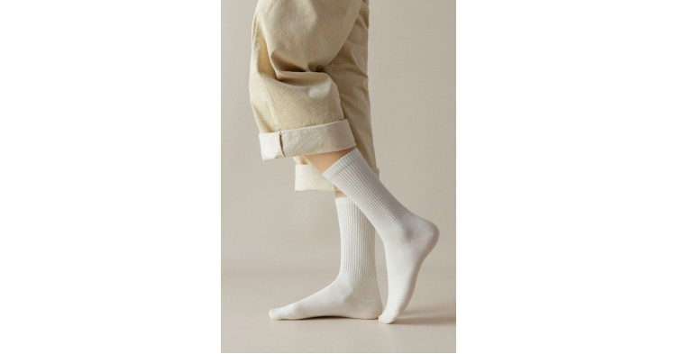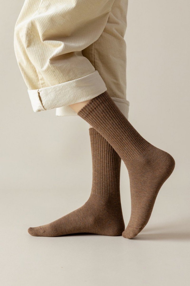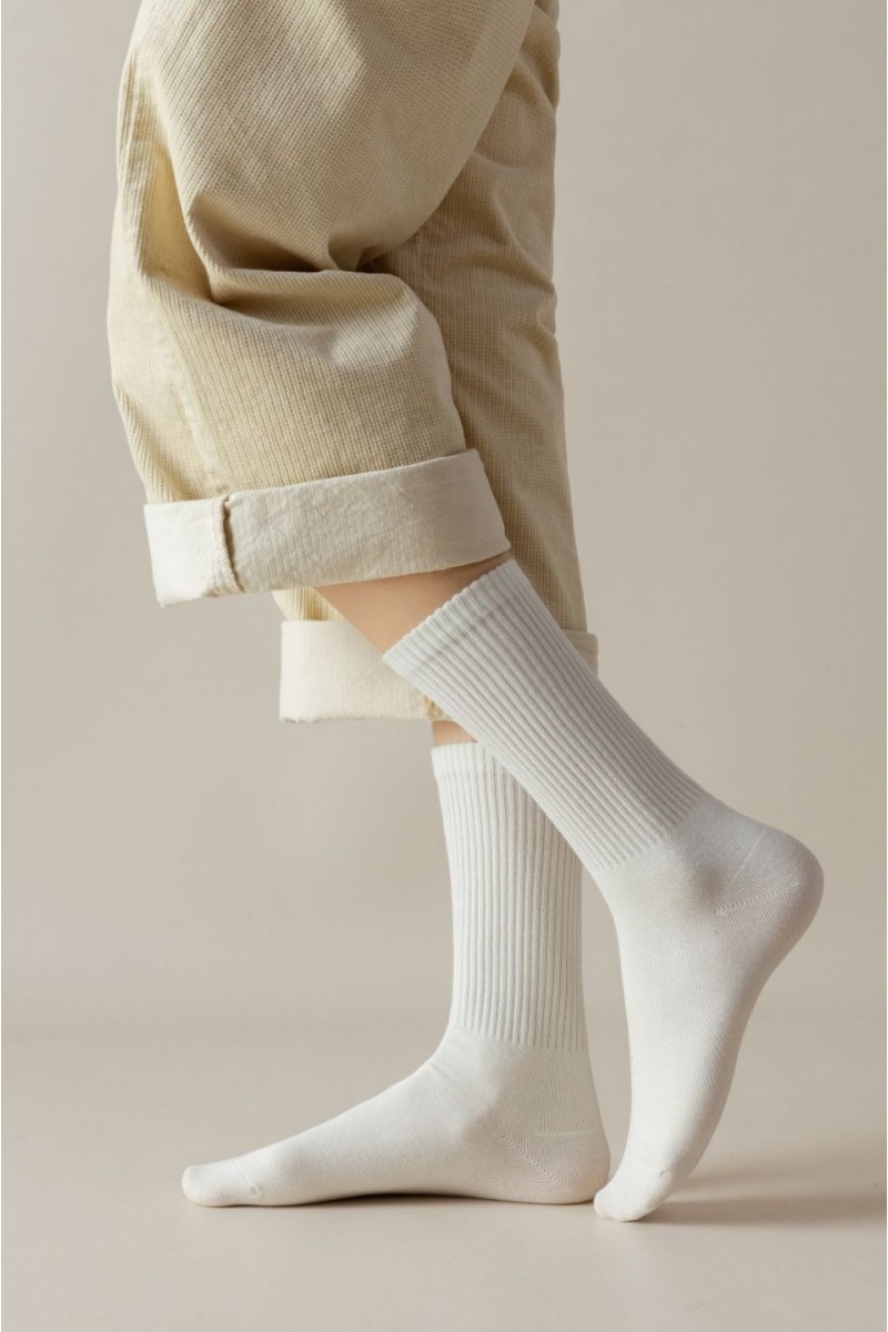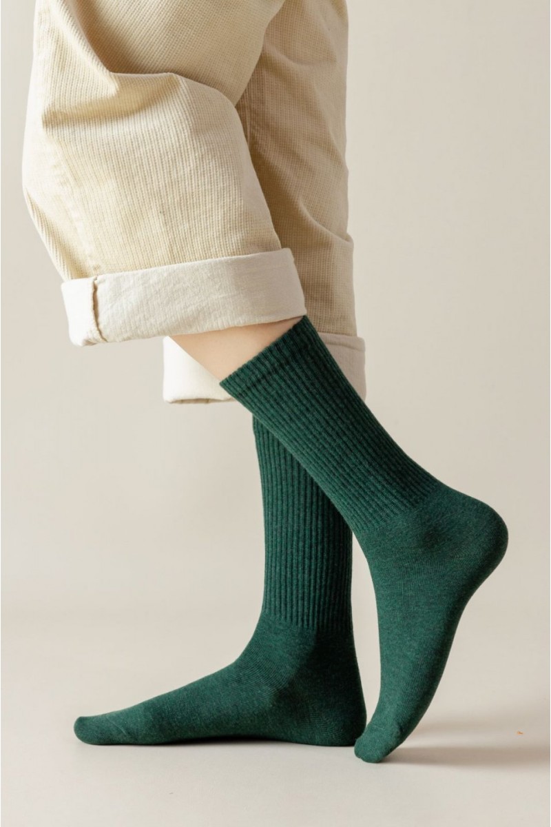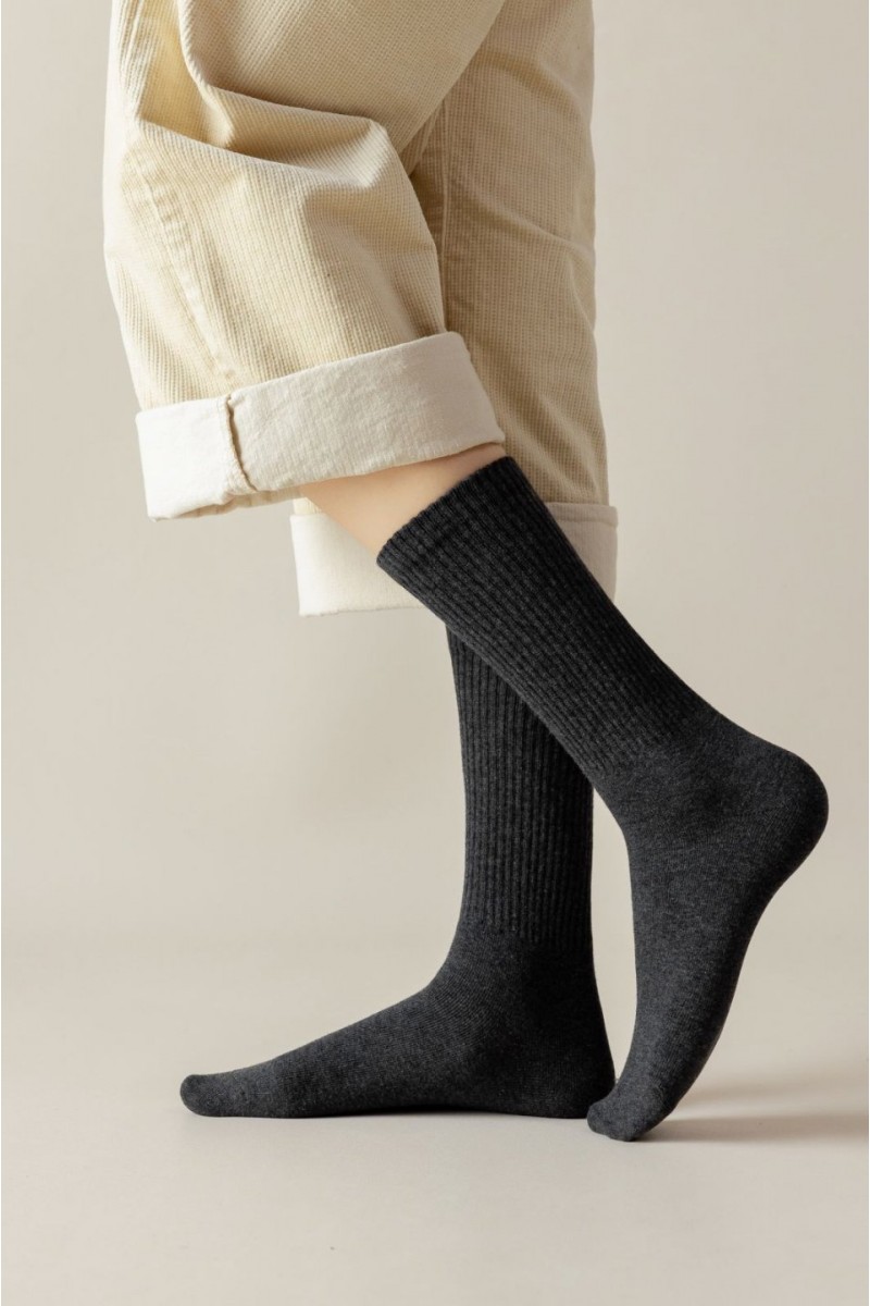 Высокие женские носки с широкой спортивной резинкой из плотного хлопка в рубчик. Резинка высокая в полоску с двубортным краем. Пяточка вывязанная укрепленная, на мыске аккуратный шов. Комфортные и мягкие, отлично подойдут для межсезонья. Носочки однотонные меланжевые, представлены в 8 оттенках.