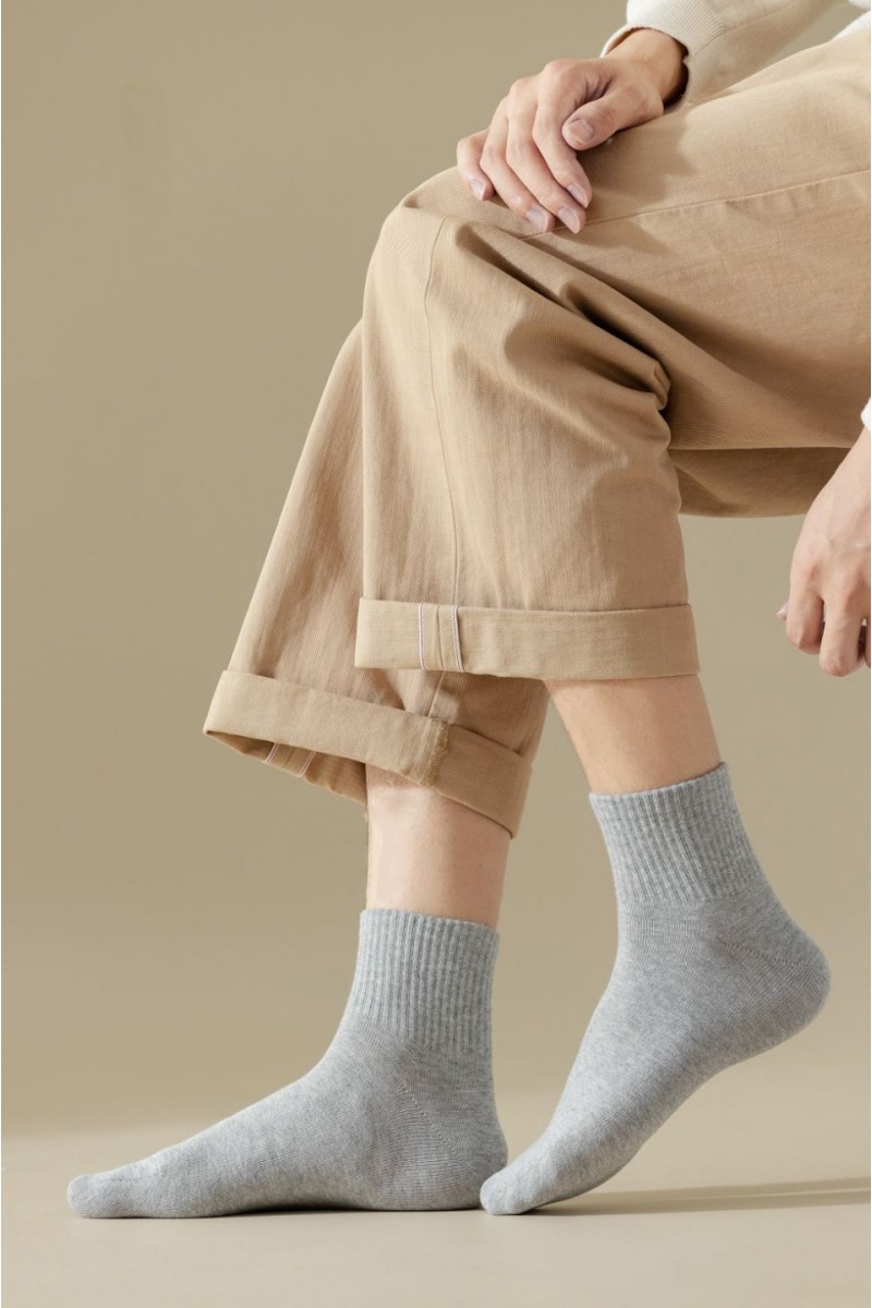 Женские меланжевые носки средней посадки – идеальный выбор для комфортного ношения в тёплое время года и межсезонье. Изготовленные из мягкого и приятного на ощупь материала, они обеспечат вам комфорт в течение всего дня. Однотонные носки с широкой резиночкой в рубчик надежно фиксируются на ноге, не сдавливая её и не вызывая дискомфорта. Укреплённая вывязанная пяточка и аккуратный неощутимый шов на мыске гарантируют долговечность и аккуратный внешний вид. Эти носки отлично подойдут для ношения с кроссовками, кедами и другой обувью. Размер 23-25 идеально подходит для стопы 36-38 размера, а размер 39 подойдёт для ног средней ширины.