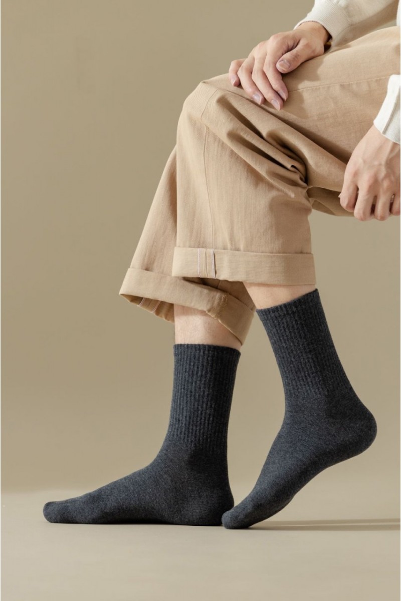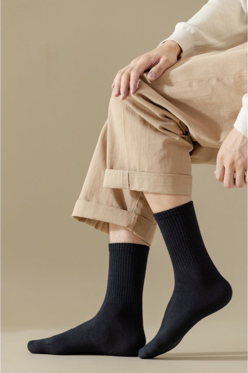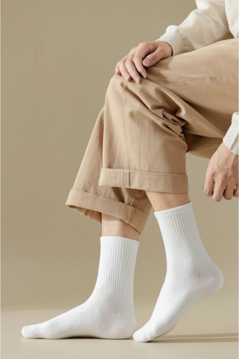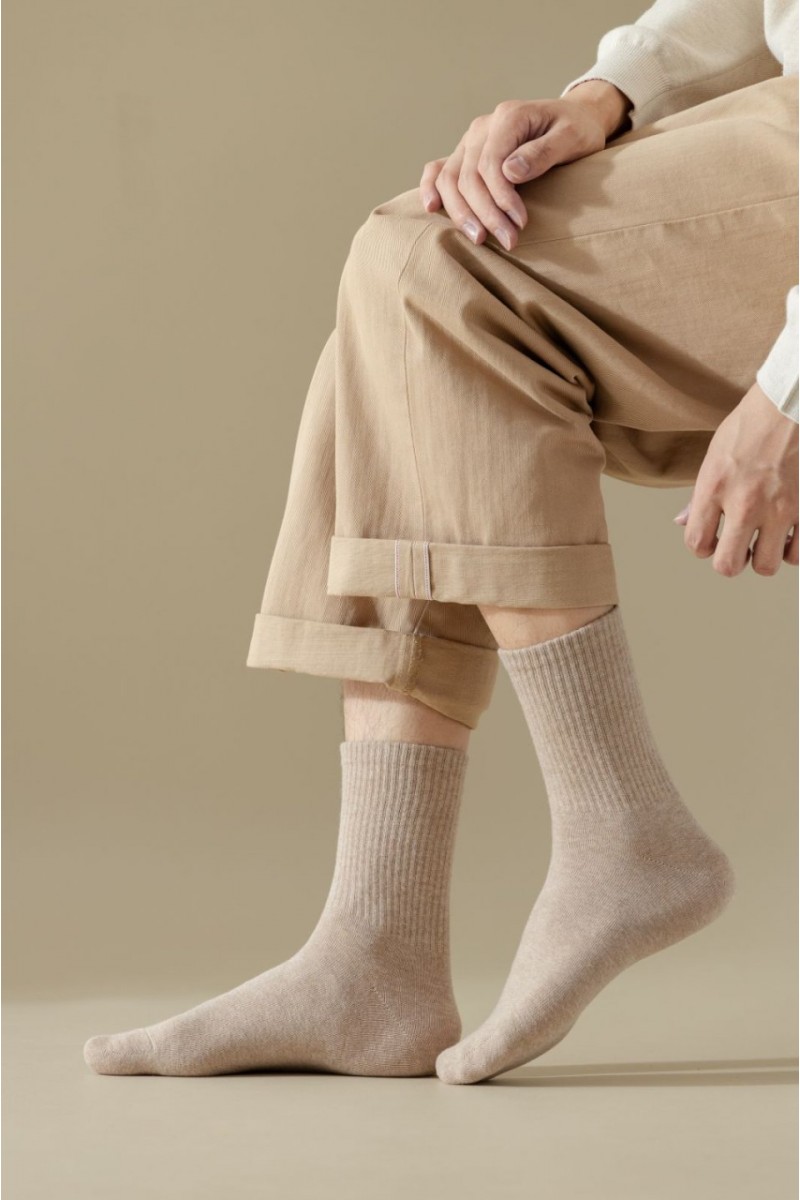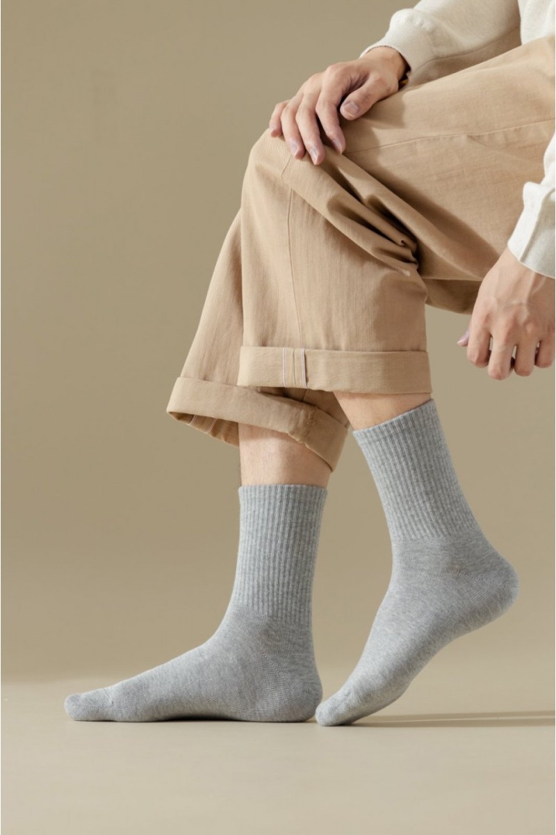 Высокие женские носки с широкой спортивной резинкой из плотного хлопка в рубчик. Резинка высокая в полоску с двубортным краем. Пяточка вывязанная укрепленная, на мыске аккуратный шов. Комфортные и мягкие, отлично подойдут для межсезонья. Носочки однотонные меланжевые, представлены в 4 базовых оттенках: черный, бежевый, серый и белый.