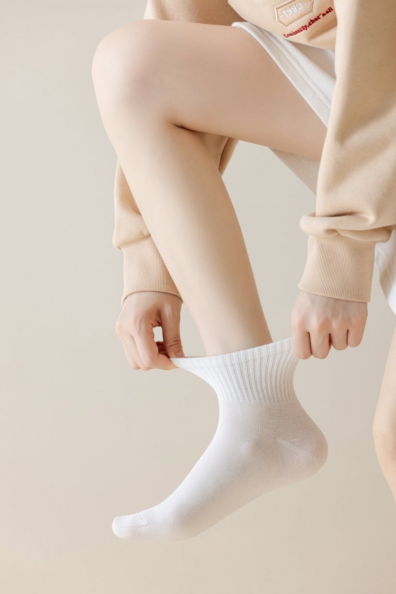 Носки из мягкого и дышащего хлопка, средней посадки. Прекрасно подходят как для повседневной носки, так и для занятий спортом. Модель доступна в базовых оттенках, вы сможете подобрать идеальную пару под любое ваше настроение или образ. Для большей прочности и эластичности в состав ткани входят полиамид и эластан. Пяточка вывязанная, благодаря чему носки сидят комфортно и не перекручиваются. Шов на мыске плоский неощутимый.