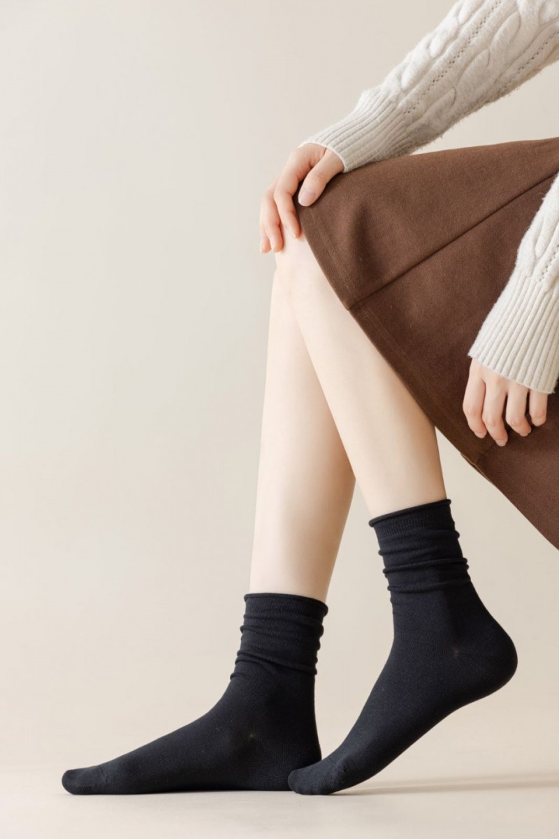 Женские удлиненные хлопковые носки без резинки. Верхний край слегка закручен, что предотвращает распускание ткани. Длину модели можно корректировать в зависимости от вашего образа. Идеально подойдут пол лоферы и ботинки. Изготовлены из мягкого эластичного хлопка. Для большей прочности и эластичности в состав ткани входят полиамид и эластан. Пяточка вывязанная, благодаря чему носки сидят комфортно и не перекручиваются. Шов на мыске плоский неощутимый.