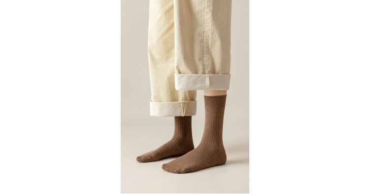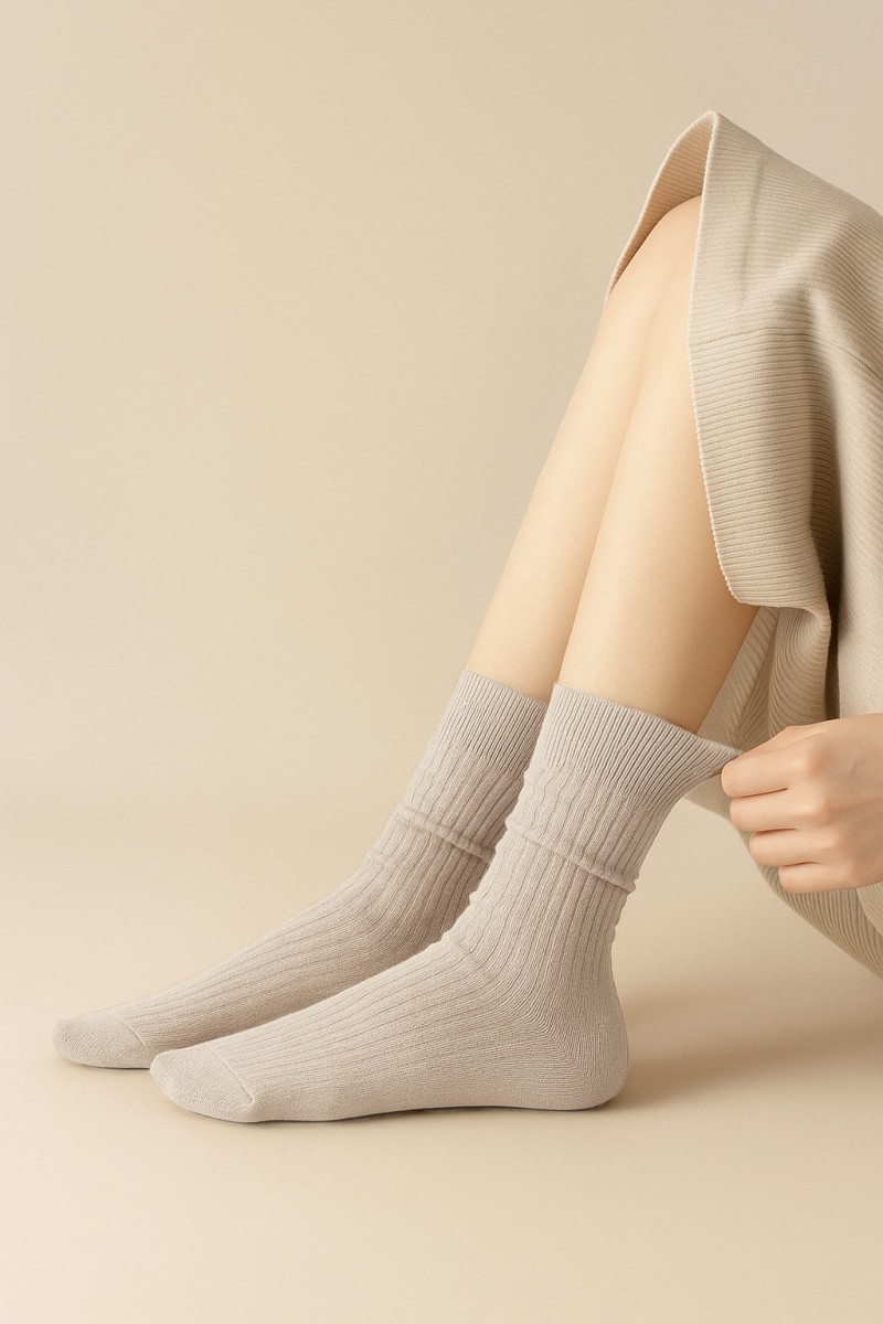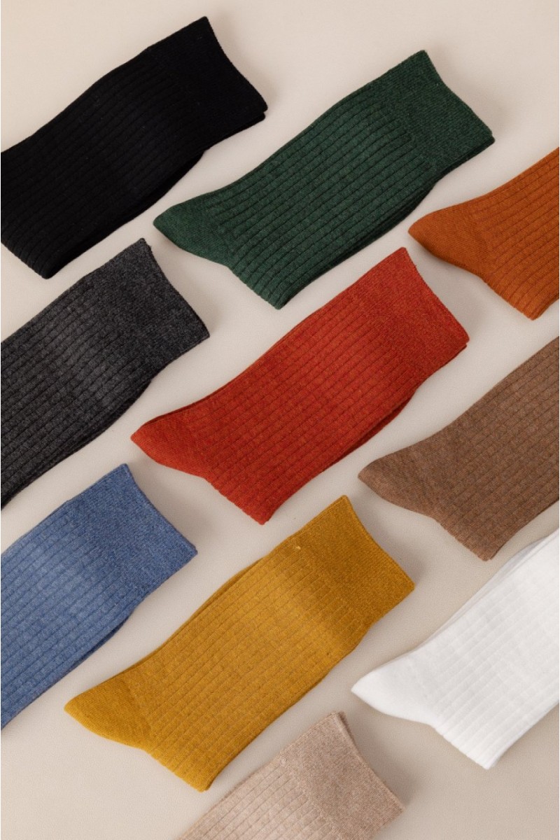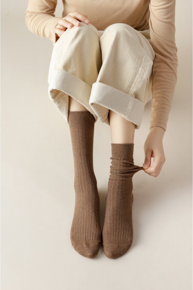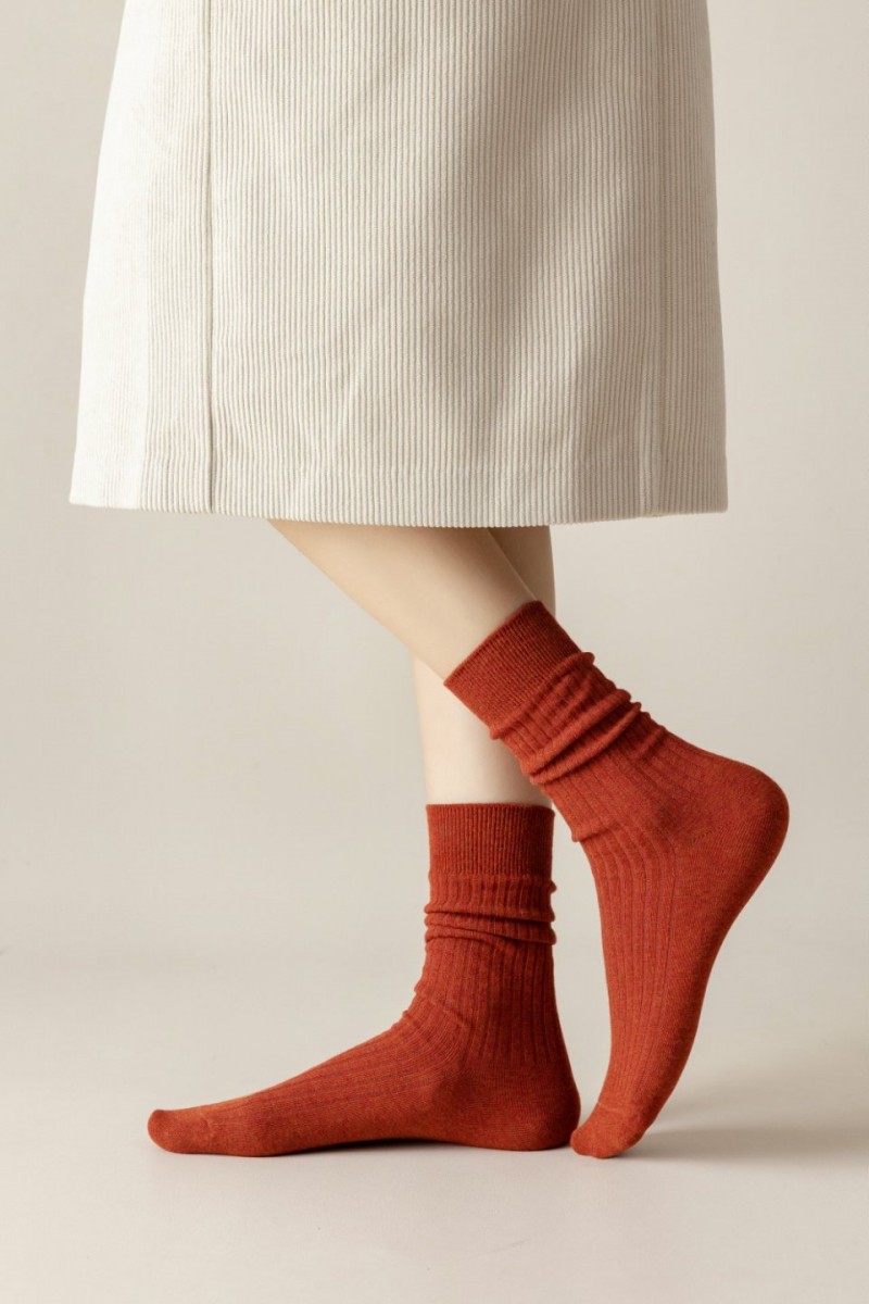 Высокие женские демисезонные носки из плотного хлопка. Рельефный узор в полоску на паголенке и верхней части стопы. Сверху широкая гладкая резинка. Пяточка вывязанная, на мыске аккуратный шов. Носки мягкие, благодаря эластану в составе прочные и износостойкие. Представлены в 10 оттенках: яркий фиолетовый, кирпичный, горчичный, классические черный, белый, бежевый, серый.