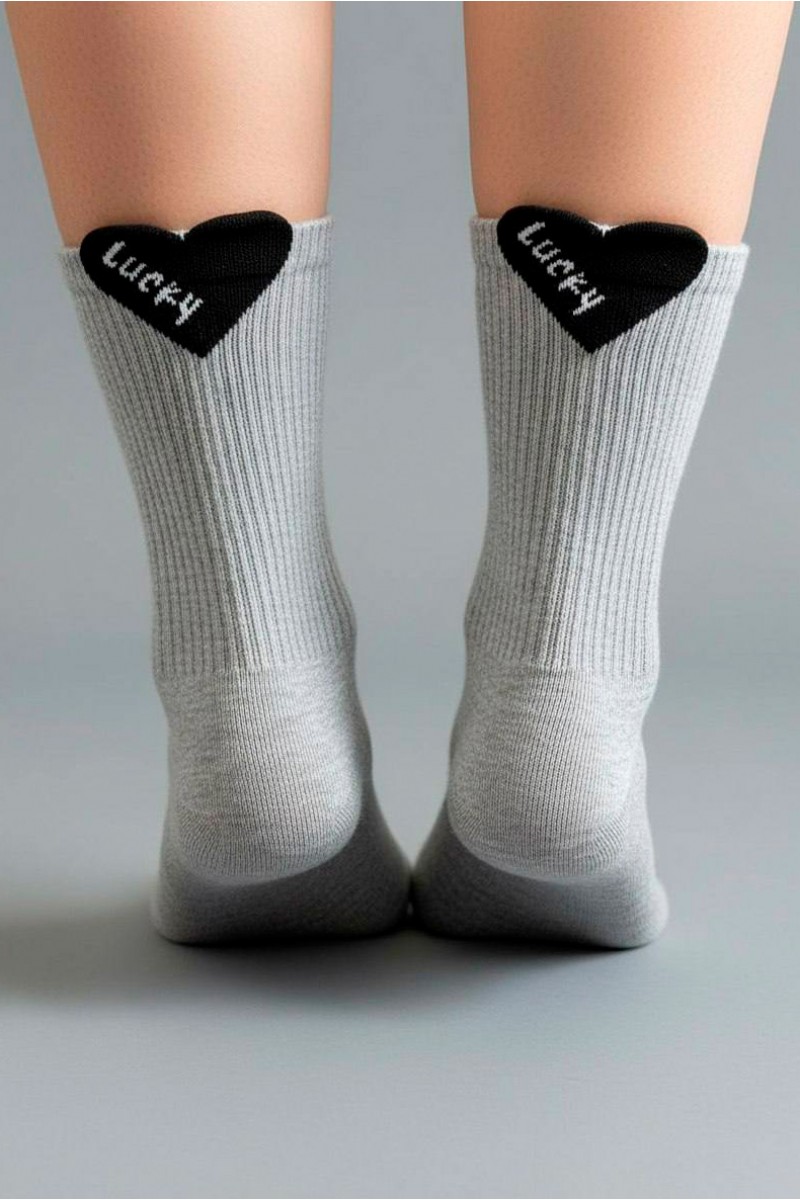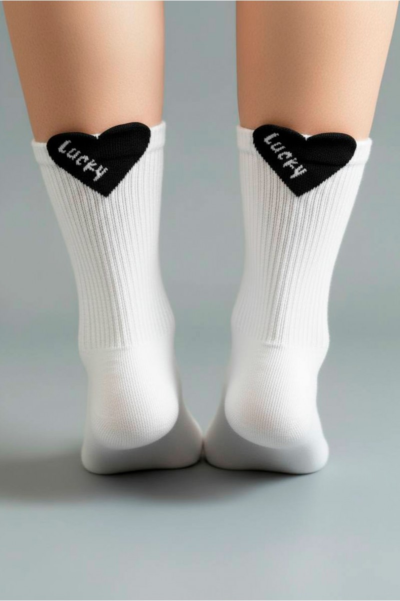 Хлопковые носки в базовых цветах — идеальный выбор на каждый день. Мягкий и дышащий материал обеспечивает комфорт и приятную посадку. Сзади расположен стильный акцент — объёмное сердце с надписью Lucky, которое добавляет образу индивидуальности. Носки легко сочетаются с повседневной и спортивной обувью. Отличный вариант для себя или в качестве небольшого подарка.