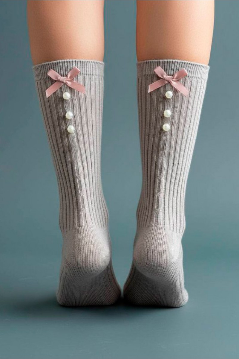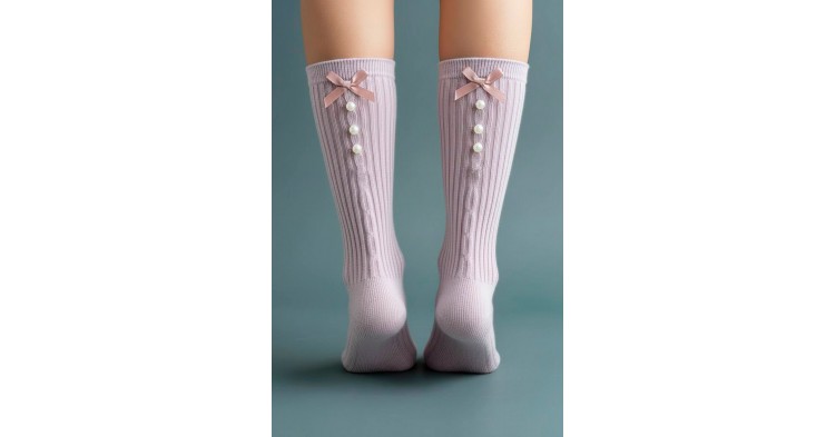 Нежные хлопковые носки с декоративными бусинами сзади и аккуратным бантиком добавляют образу изящества. Натуральный хлопок обеспечивает комфорт и хорошую воздухопроницаемость. Приятные оттенки легко сочетаются с повседневной и домашней одеждой. Идеальный выбор для тех, кто ценит уют и стильные детали.