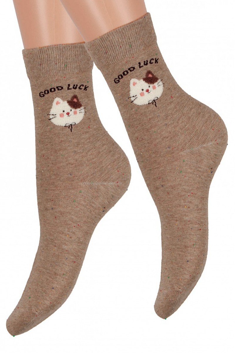 Женские носочки с принтом сбоку с двух сторон выглядят ярко и оригинально. Дизайн с изображением животного и разными надписями добавляет образу игривое настроение. Мягкий материал обеспечивает комфорт при носке. Отличный вариант для повседневных образов и подарка.