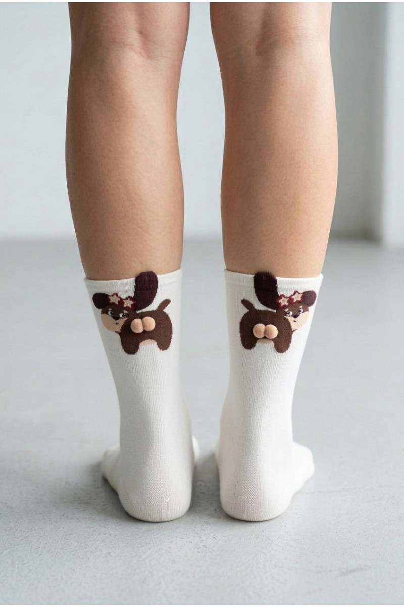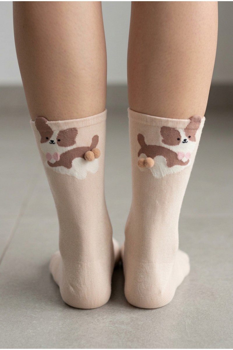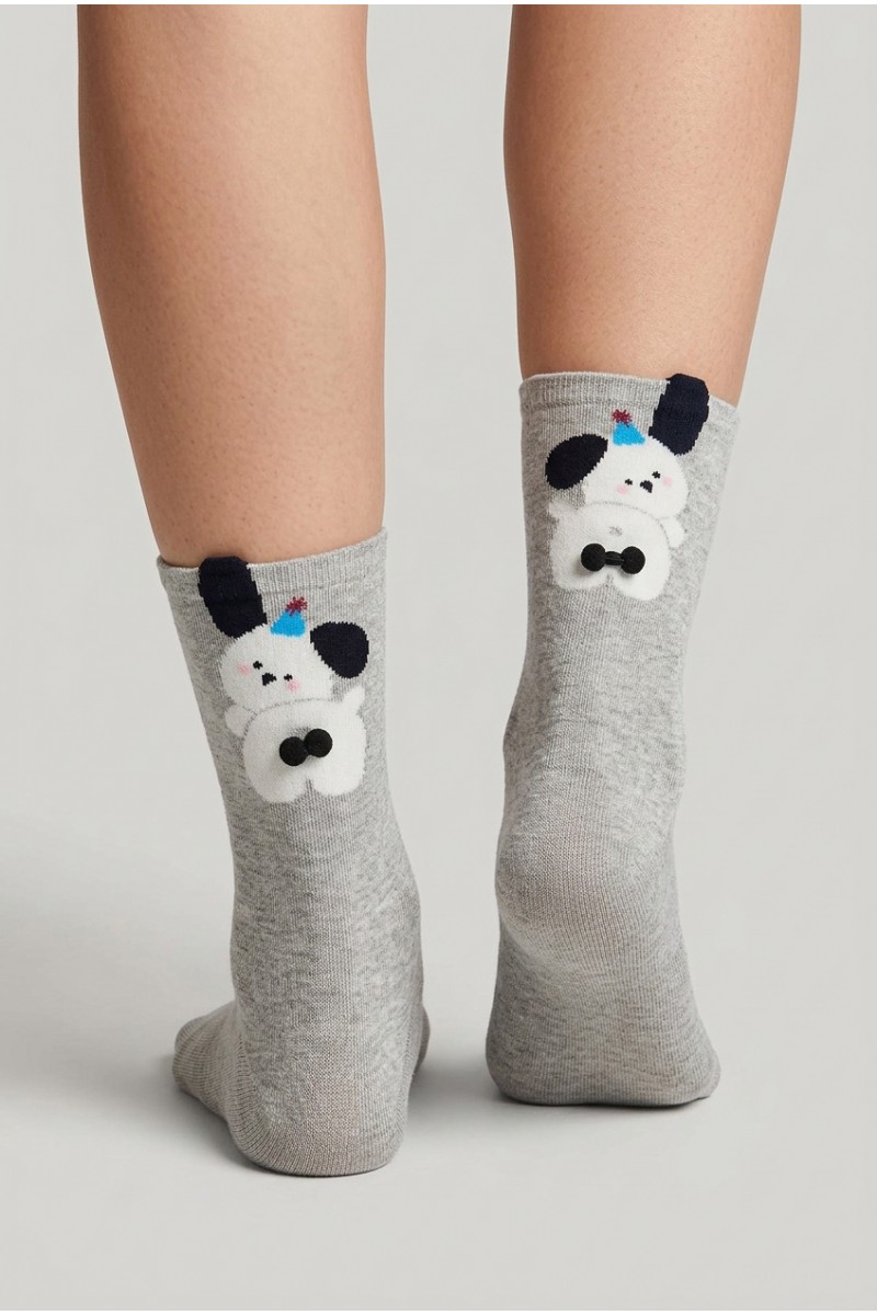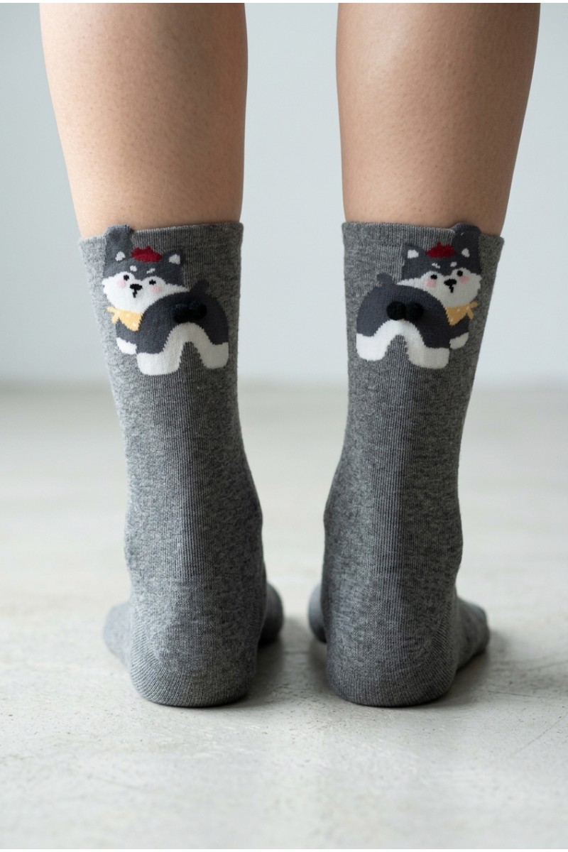 Очаровательные женские носки с забавными изображениями собак — отличный выбор для поднятия настроения и комфортной повседневной носки. Выполнены из мягкого и приятного к телу хлопкового материала с добавлением эластана для эластичности и идеальной посадки по ноге. Каждая пара украшена ярким и милым рисунком с объемными деталями, которые придают носкам оригинальность и индивидуальность. В ассортименте — разные расцветки на любой вкус.