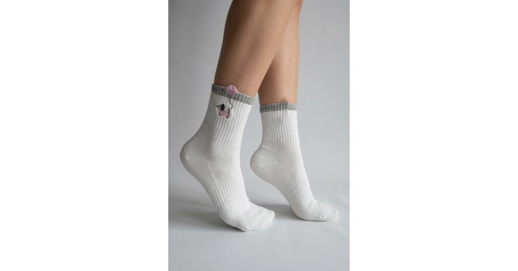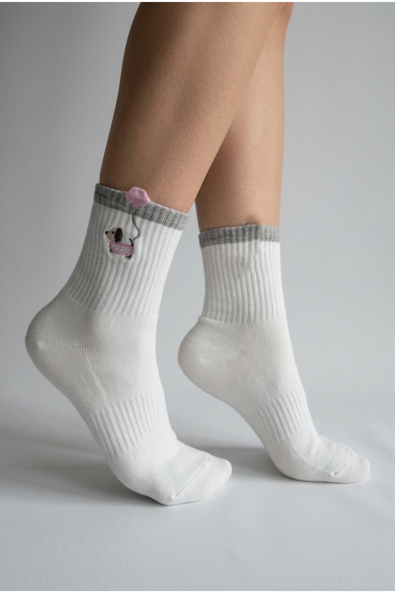 Стильные и уютные носки в базовых оттенках — идеальный выбор для повседневного комфорта. Модель выполнена из мягкого хлопка с приятной на ощупь текстурой, хорошо тянется и аккуратно облегает ногу, не сдавливая. Классическая длина до середины голени обеспечивает универсальность — носки отлично сочетаются как с домашней одеждой, так и с повседневными образами. Особенность дизайна — милый декоративный элемент с изображением собачки и объемным акцентом в виде шарика, который добавляет изделию игривости и индивидуальности.