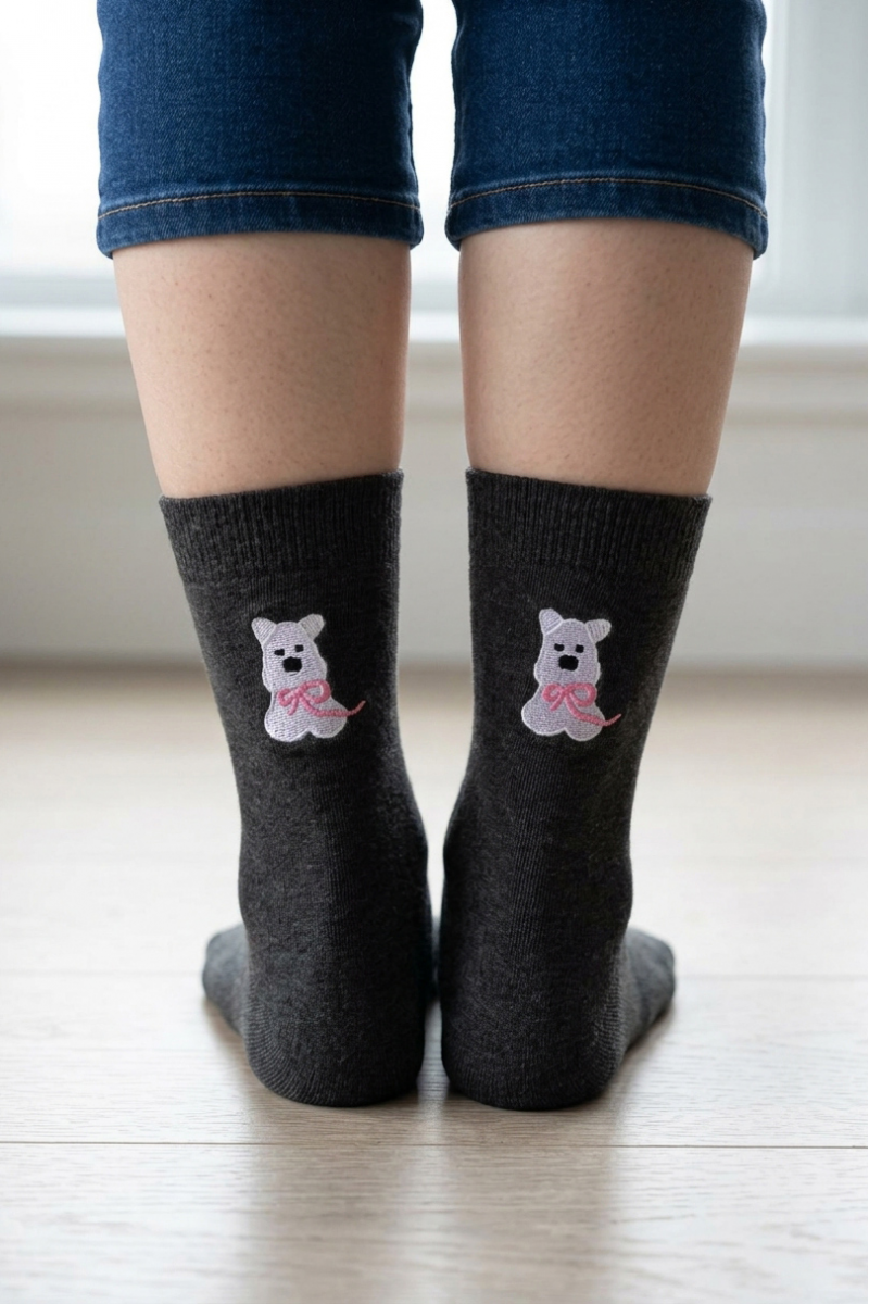 Носки женские с вышивкой «Мишка», добавят немного уюта и игривости в повседневную жизнь с этими милыми носками! Модель выполнена в универсальных цветах, который легко сочетается с любой одеждой — от спортивного стиля до кэжуал. Эти носки станут не только практичной вещью в вашем гардеробе, но и милым аксессуаром, который подарит хорошее настроение каждый день. Идеально подойдут в качестве небольшого подарка для близких!