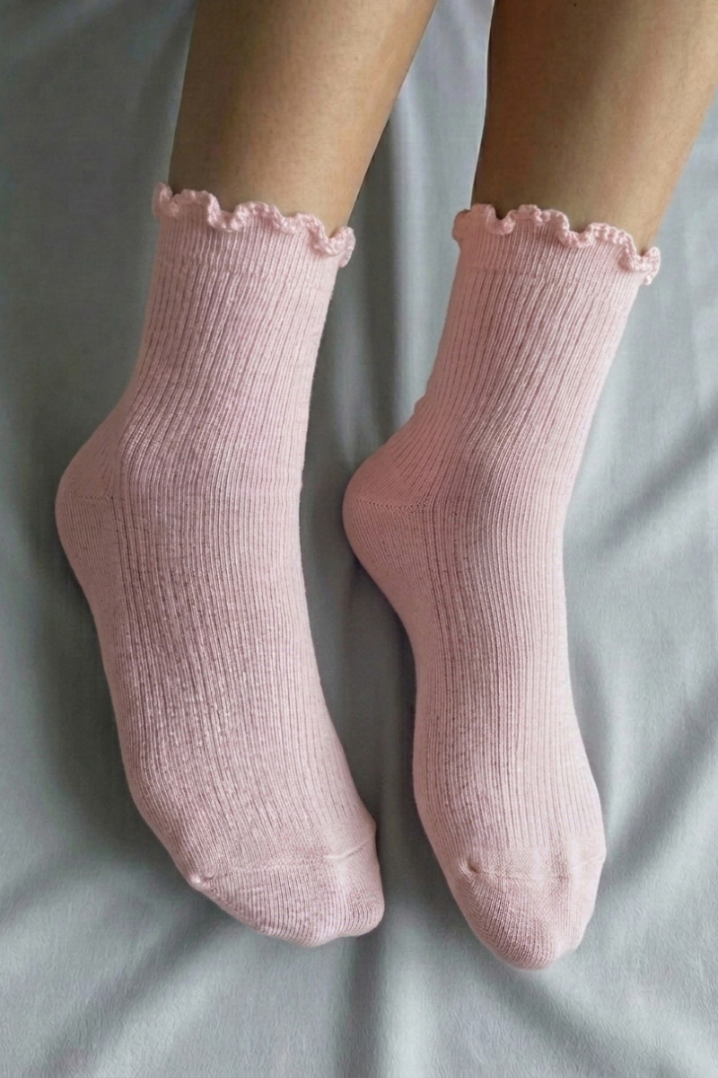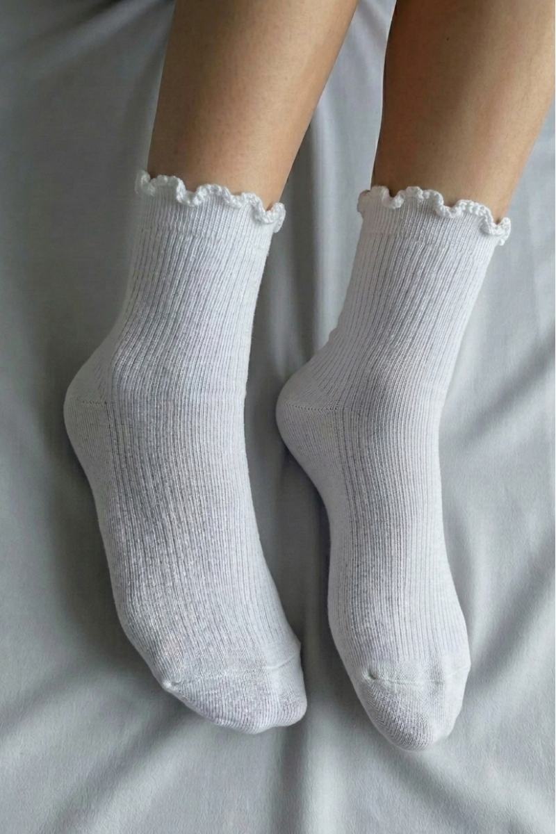 Элегантные однотонные носки с изящной оборкой по верхнему краю — стильное и практичное дополнение к вашему гардеробу. Модель выполнена в классическом однотонном исполнении, что позволяет легко сочетать её с разной обувью и одеждой: от спортивных кроссовок до женственных туфель. Вывязанная пятка с укреплением и тщательно оформленный мысок — залог качественных, удобных и долговечных носков, которые будут радовать владельца долгое время.