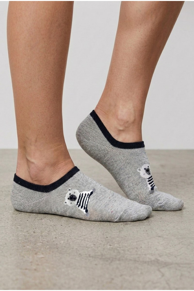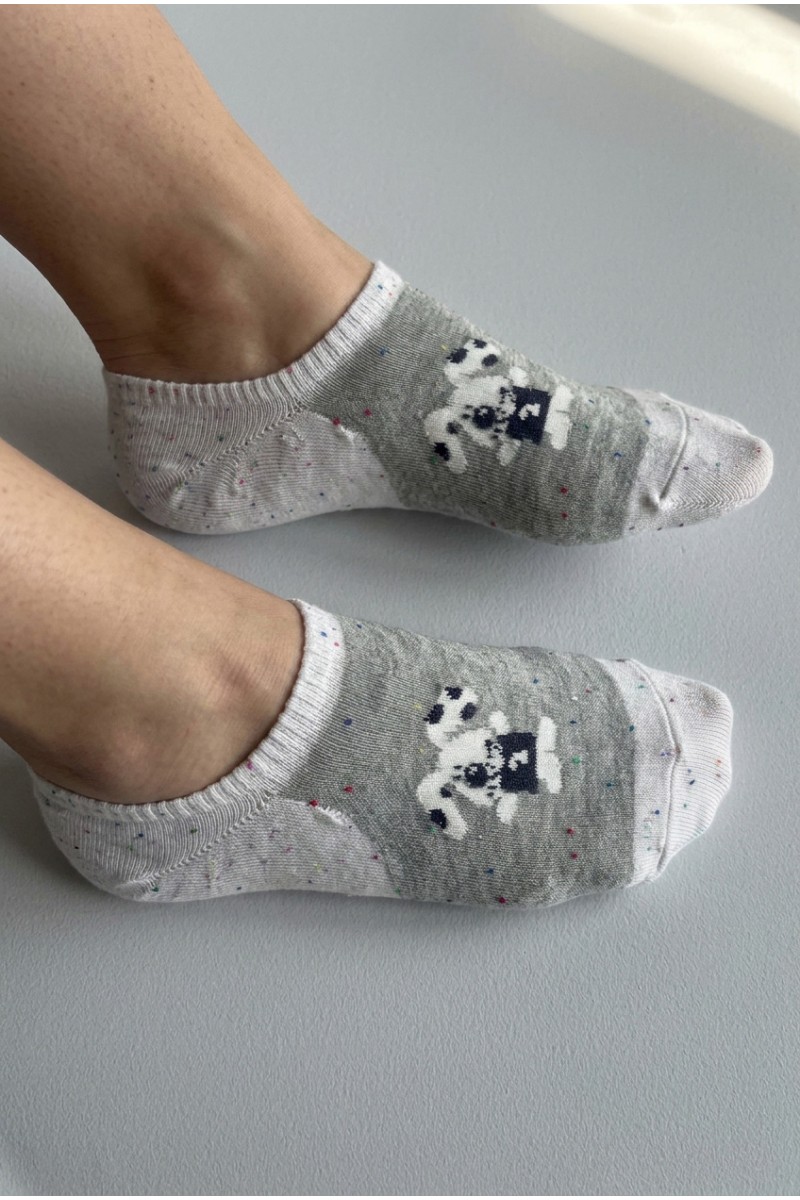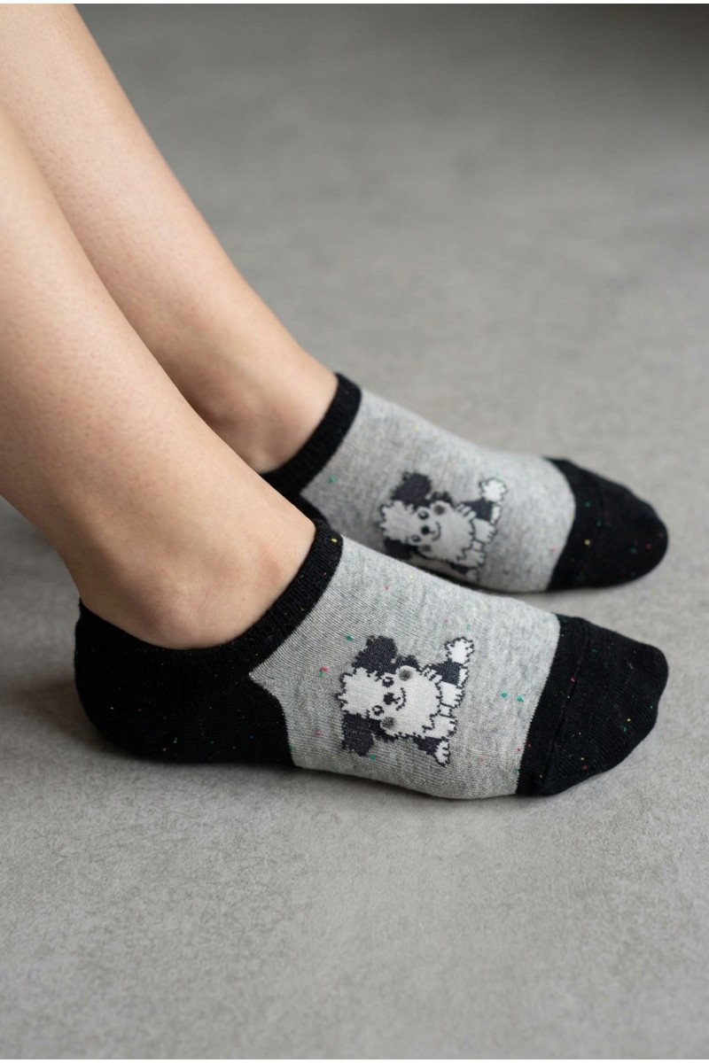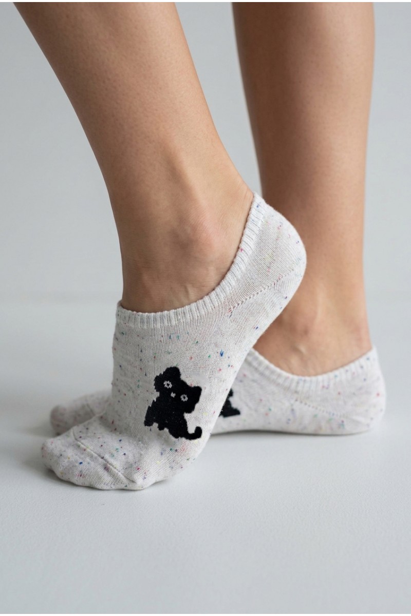 Мягкие и удобные низкие носки украшены милыми зверятами, что придаёт изделию особый шарм. Эластичная резинка хорошо фиксирует носки на стопе, а мелкие цветные вкрапления добавляют яркости образу. Такая модель отлично подойдёт для повседневной носки и станет приятным акцентом в вашем гардеробе.