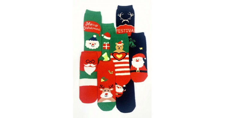 Махровые носочки с новогодними рисунками. Цена указана за 1 пару.