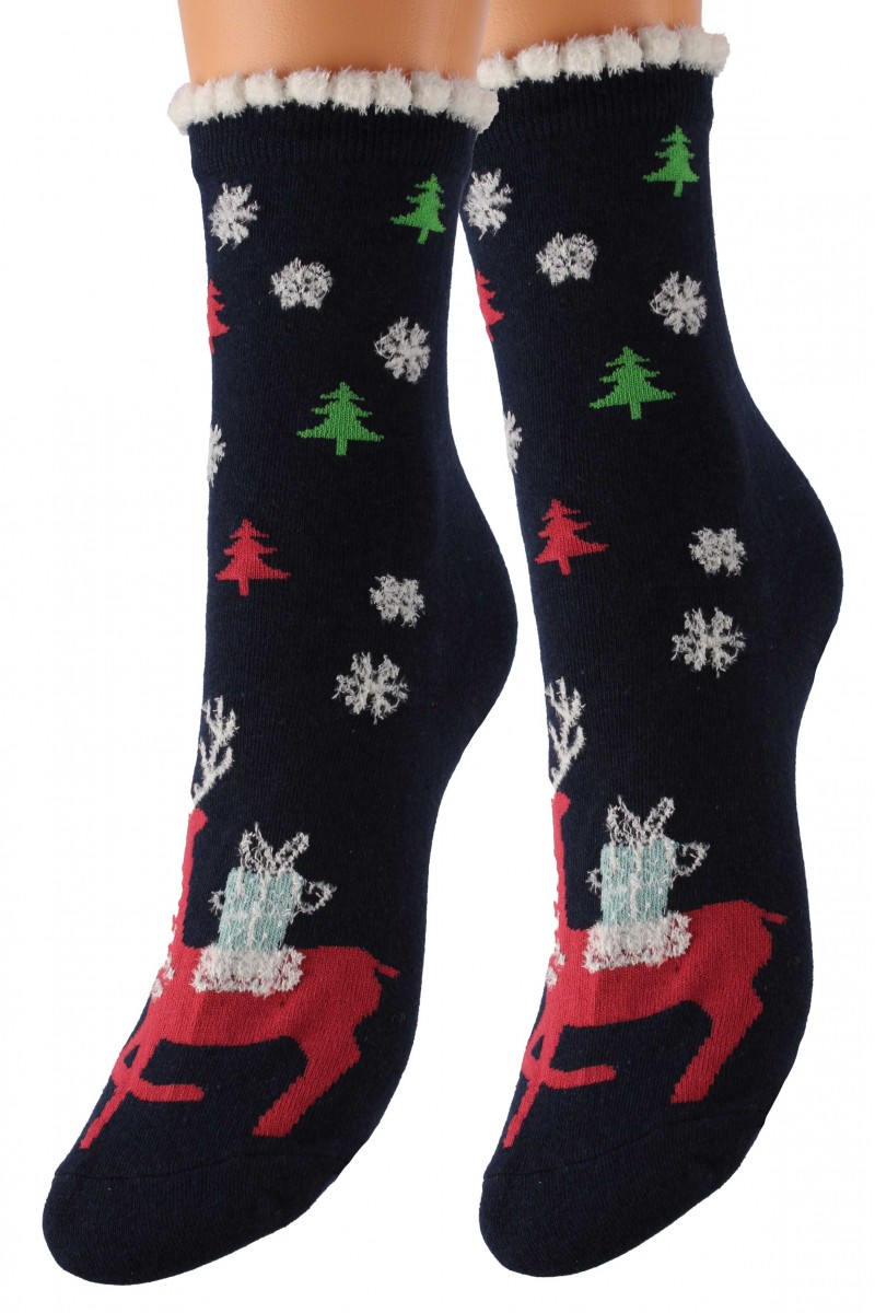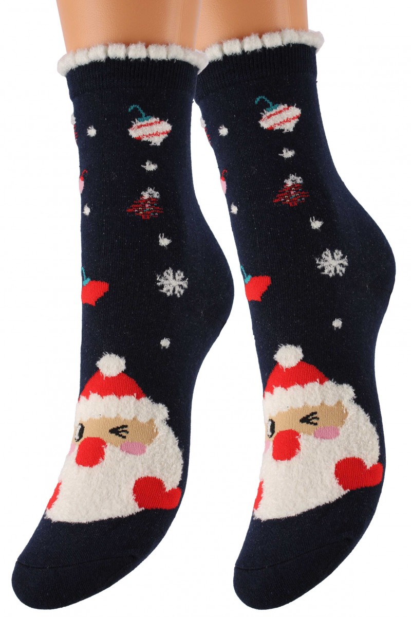 Женские новогодние носочки из хлопка с рисунками и пушистым кантом на резинке. Отличный подарок для вас и ваших близких на Новый год или Рождество. Изготовлены из натурального хлопка высокого качества с добавлением эластана , который придает эластичность , прочность и износоустойчивость.