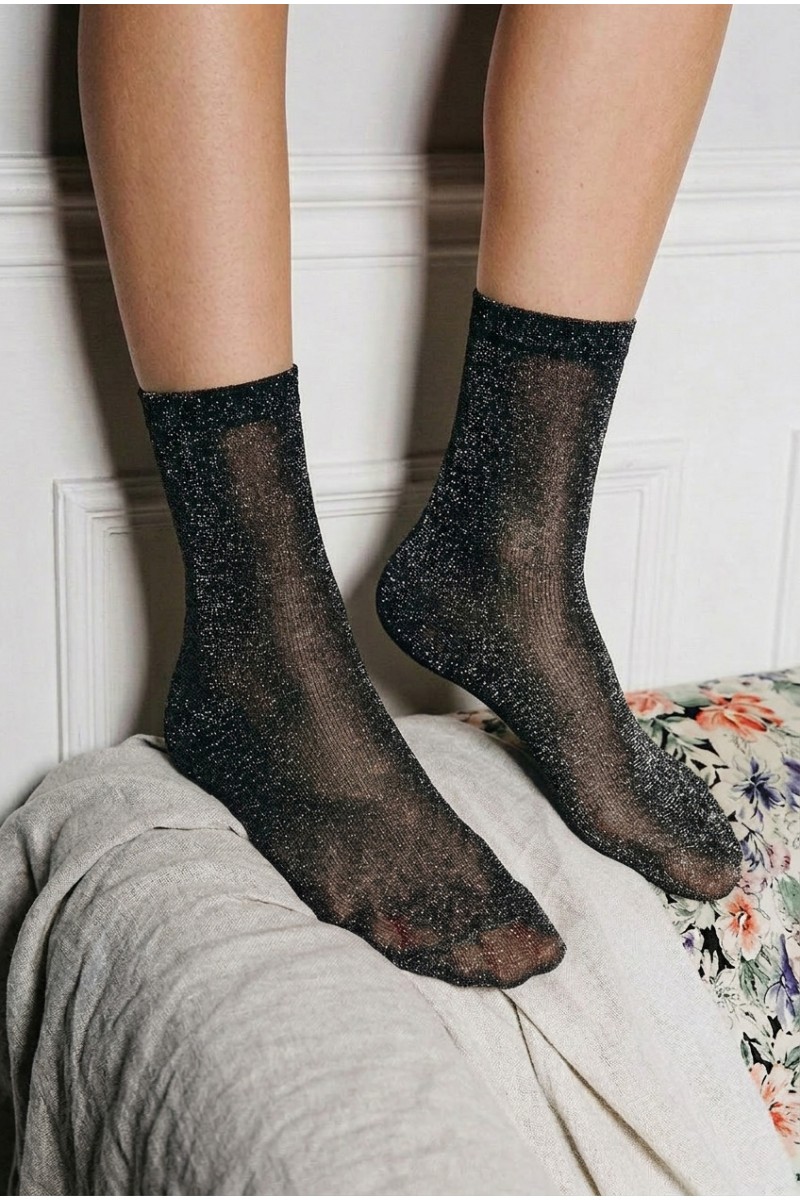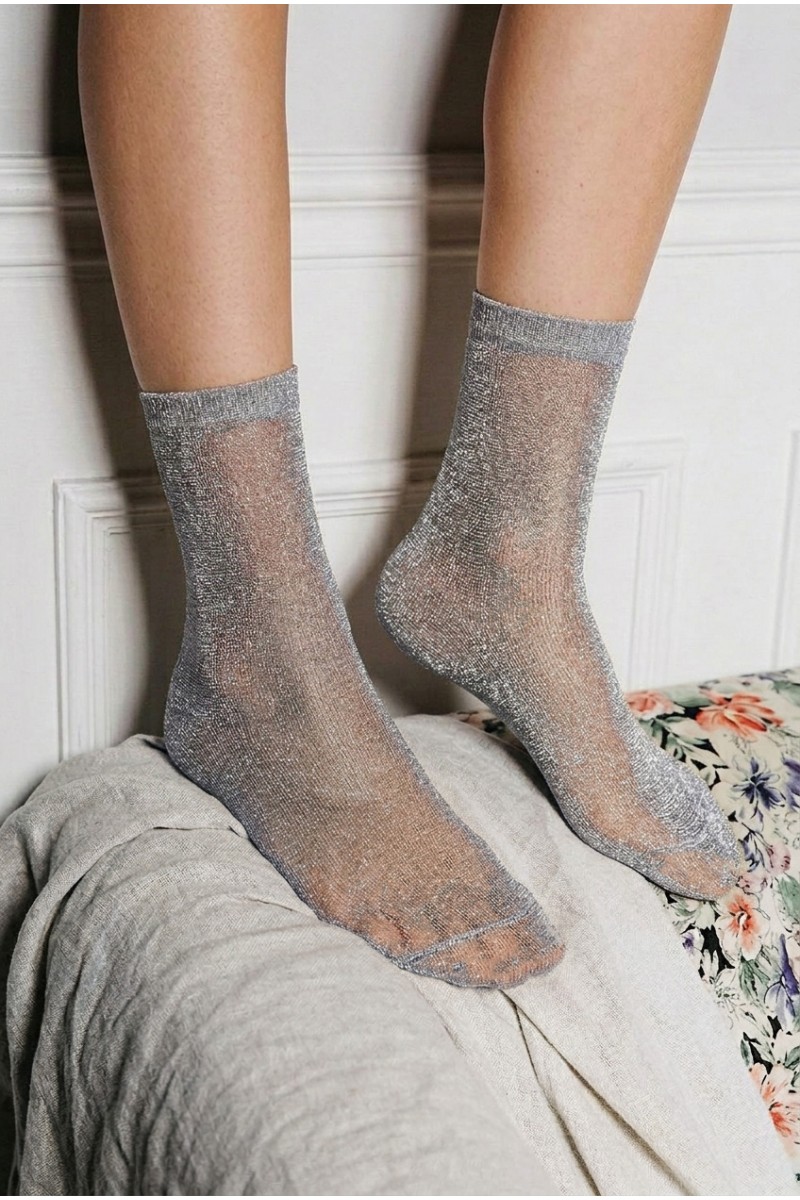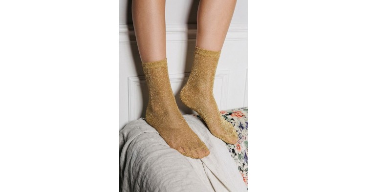 Эти носки с люрексом — отличный выбор для тех, кто хочет добавить в свой гардероб немного блеска и индивидуальности! Модель средней длины выполнена из мягкой эластичной ткани с добавлением мерцающих волокон, из-за чего носки красиво переливаются при любом освещении. Эластичная резинка аккуратно фиксирует носки на ноге, не сдавливая кожу и обеспечивая комфорт в течение всего дня. Идеально подойдут для праздничного, вечернего или повседневного образа.