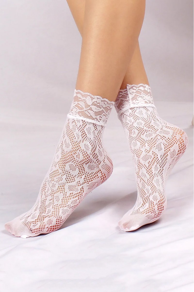 Нежные полупрозрачные носочки из мягкого эластичного кружева с цветочным узором на волнистой манжете. Лёгкие, дышащие и комфортные — добавляют образу романтичный акцент для повседневных и праздничных луков.Совет по стилю: Надевайте с платьями, юбками и укороченными брюками — белое кружево эффектно подчёркивает щиколотку и гармонирует с пастельными оттенками и денимом.
