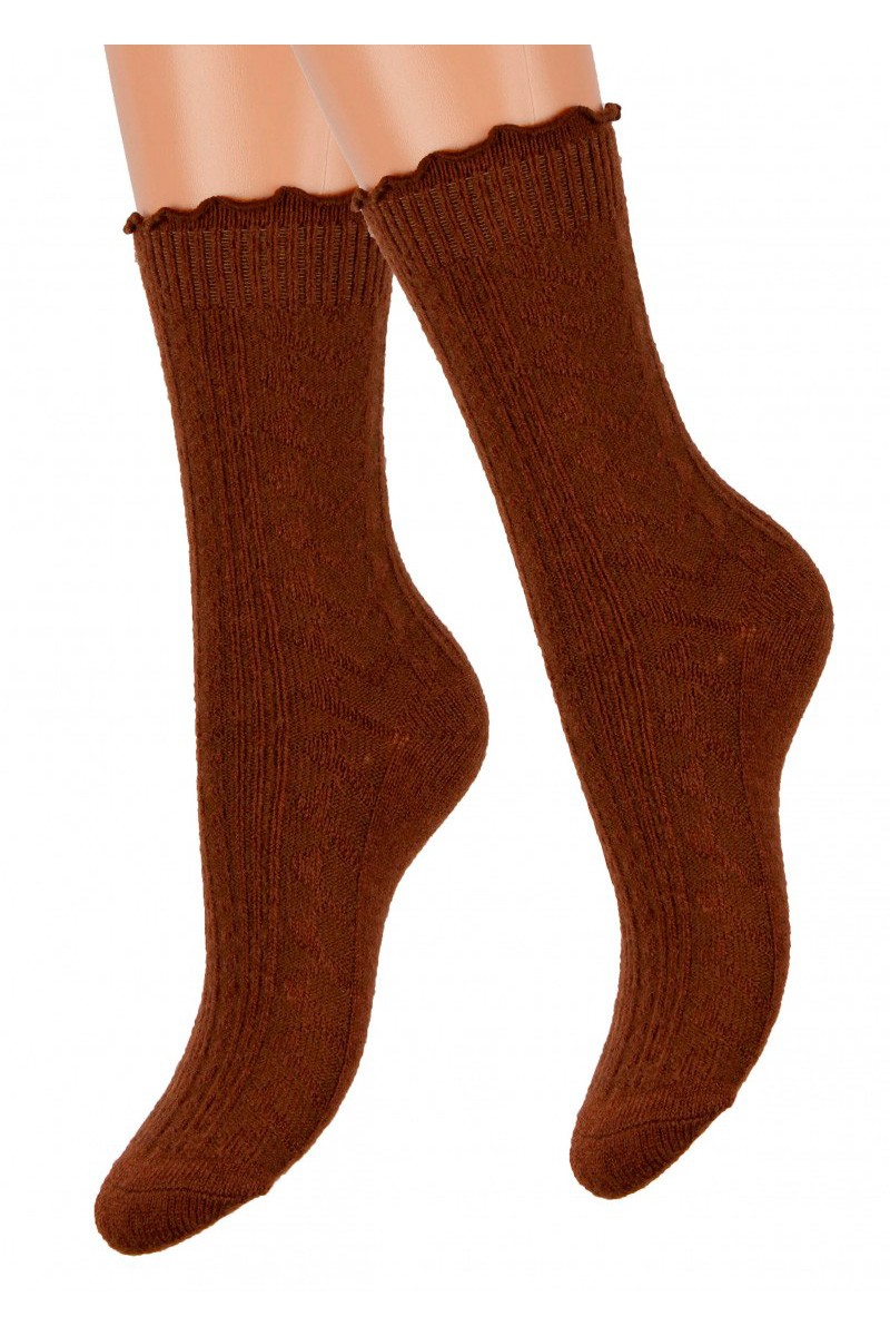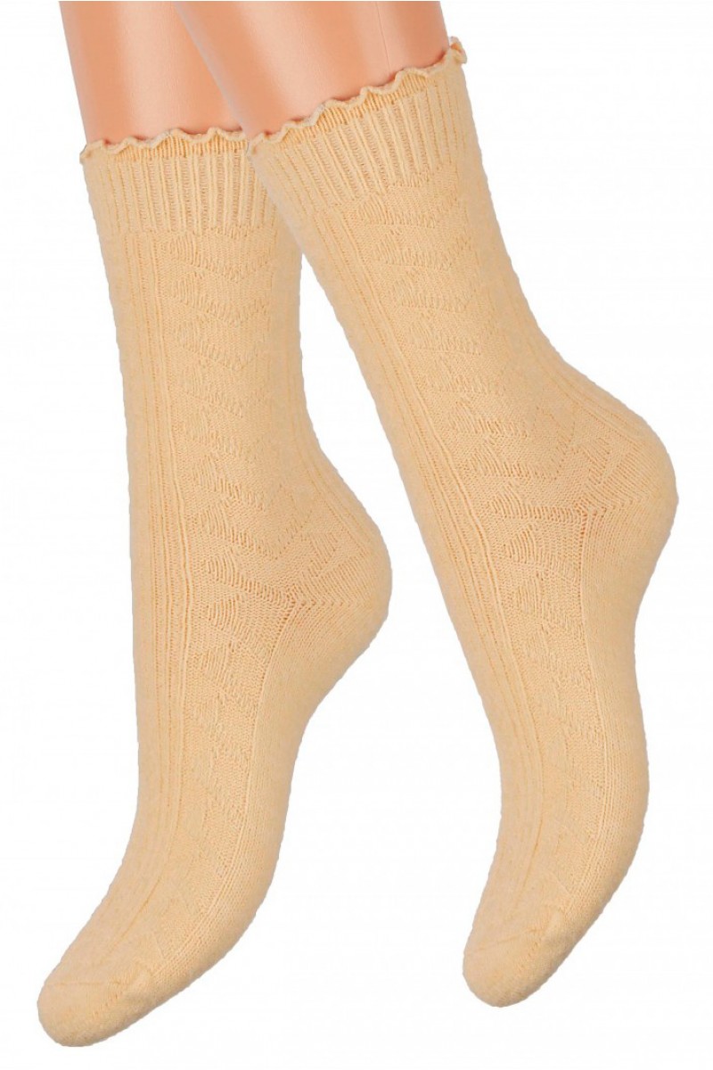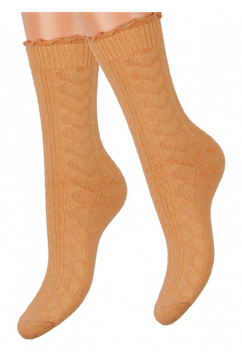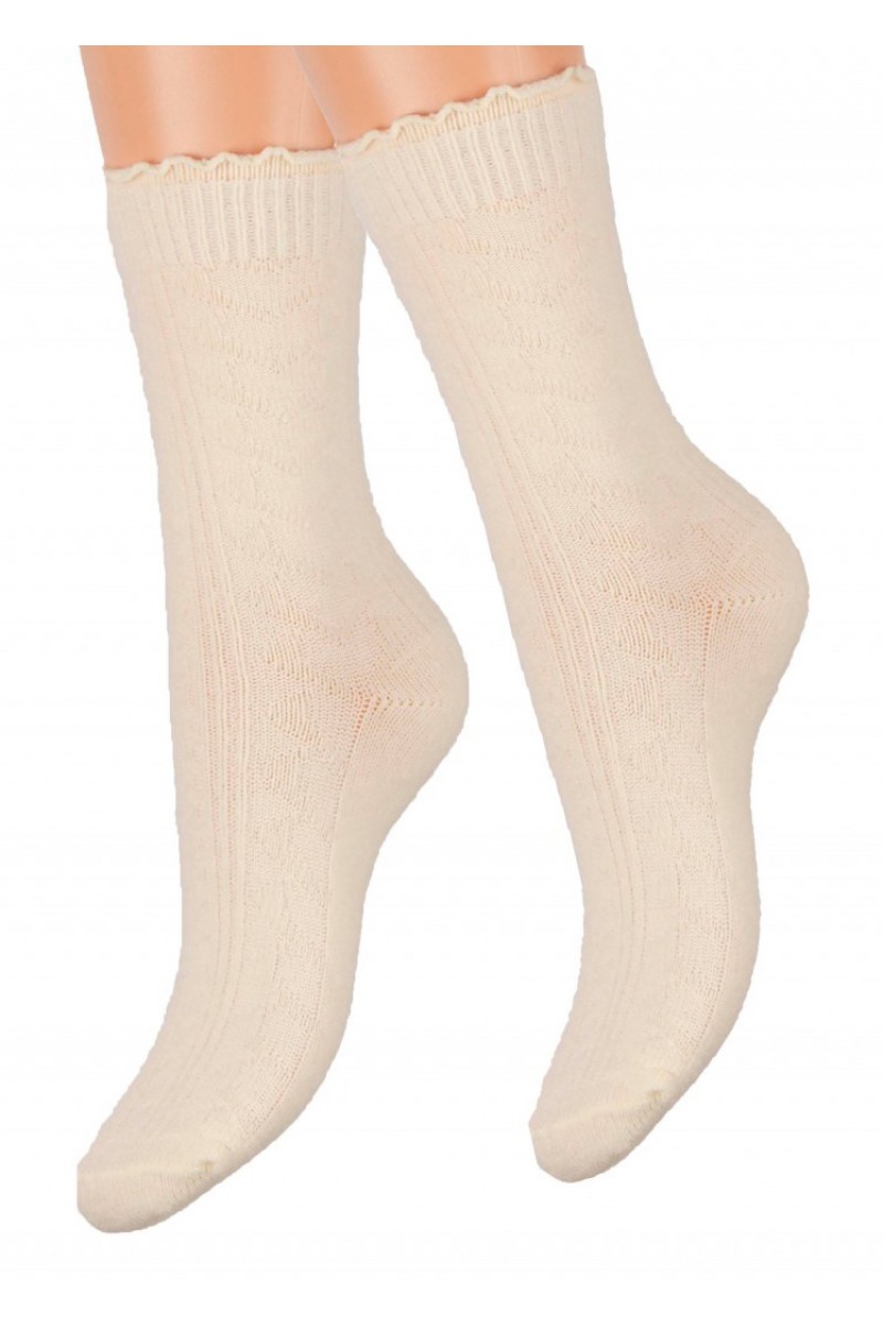 Женские носки с аккуратно вывязанной пяткой обеспечивают комфортную посадку и удобство при носке. Волнистая резинка придаёт модели изящный и женственный акцент, не сдавливая ногу. Идеальный вариант для повседневного использования и уютных домашних образов.