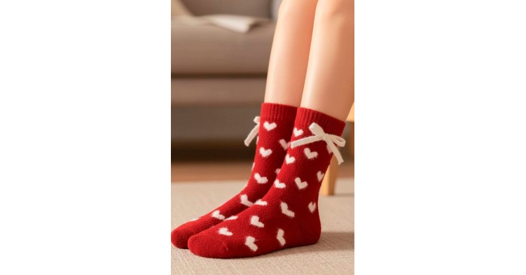 Мягкие красные носочки с яркими принтами по всему периметру станут стильным и уютным акцентом вашего образа. Комфортный материал нежно облегает стопу, обеспечивая тепло и удобство в течение всего дня. Идеальный вариант для дома или повседневной носки с праздничным настроением.